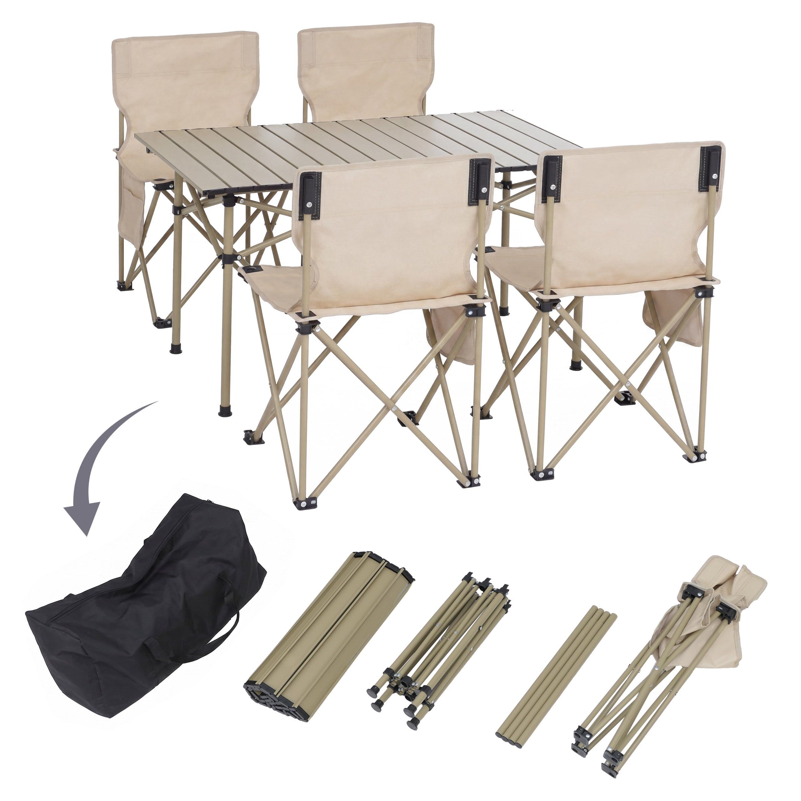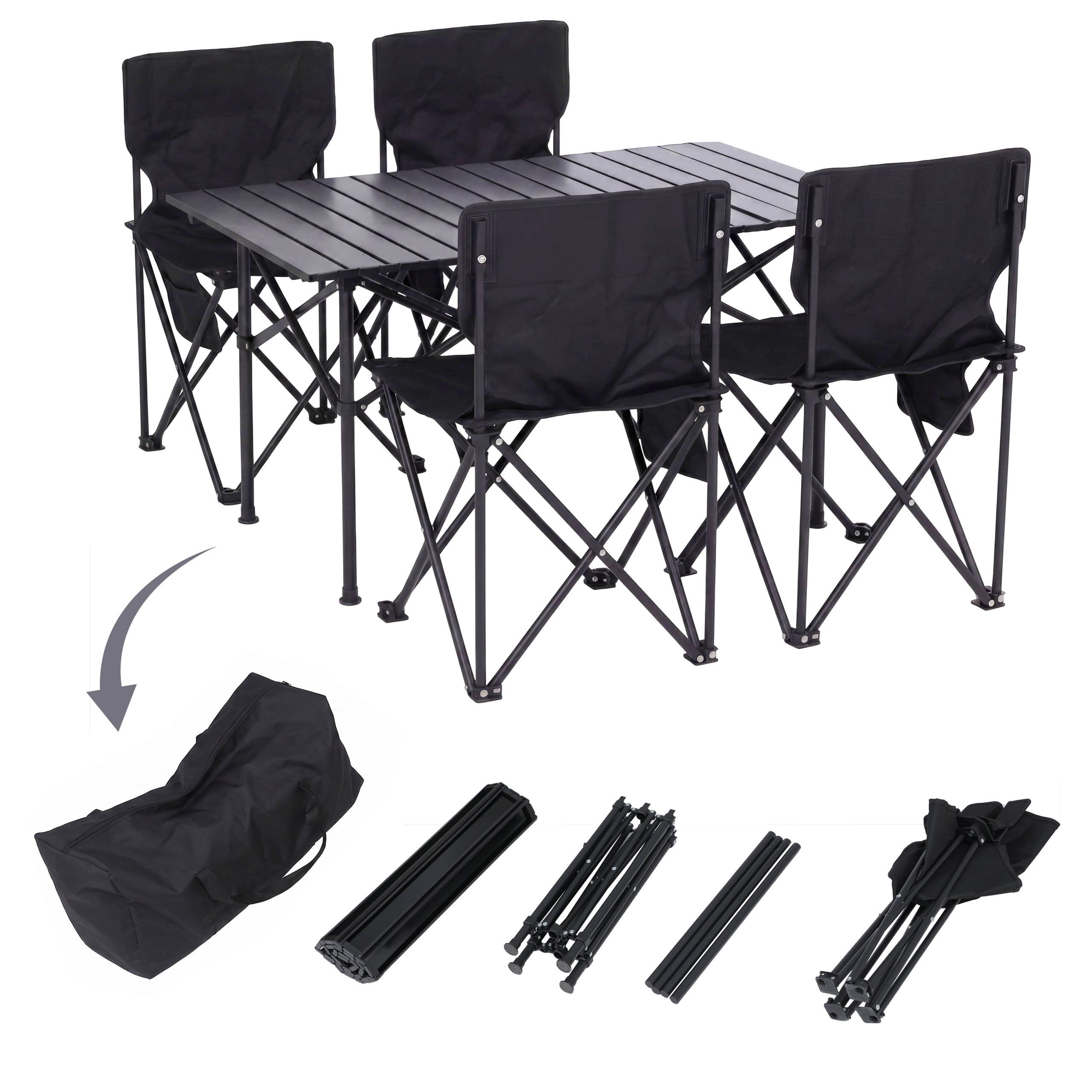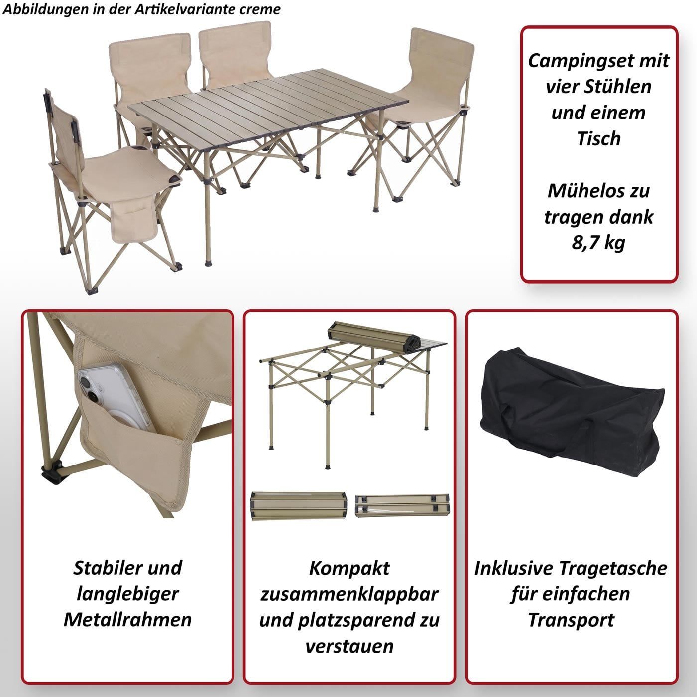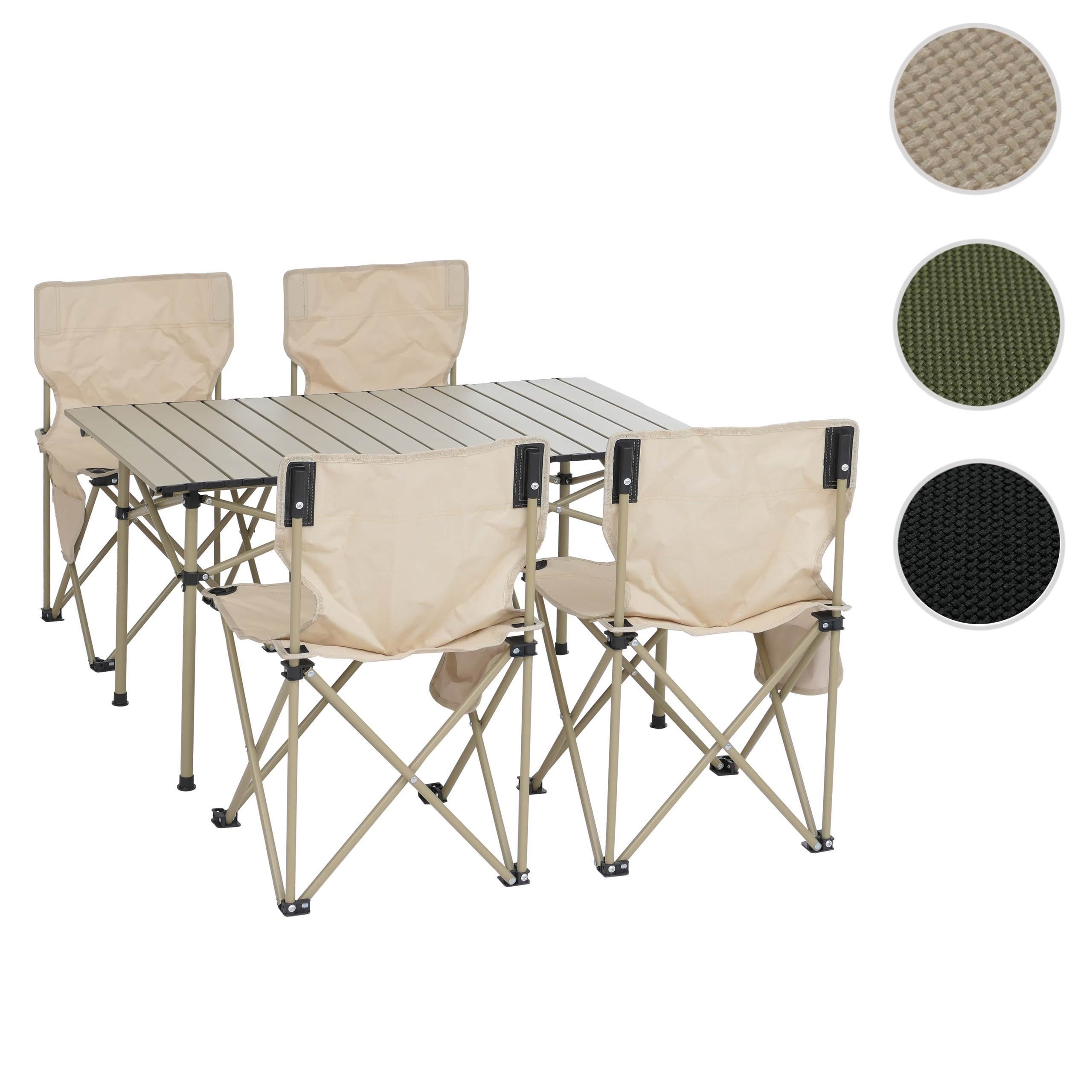 Mendler Campingset HWC-Q39, Tisch 4x Stuhl Klappstuhl Anglerstuhl faltbar, Metall Stoff