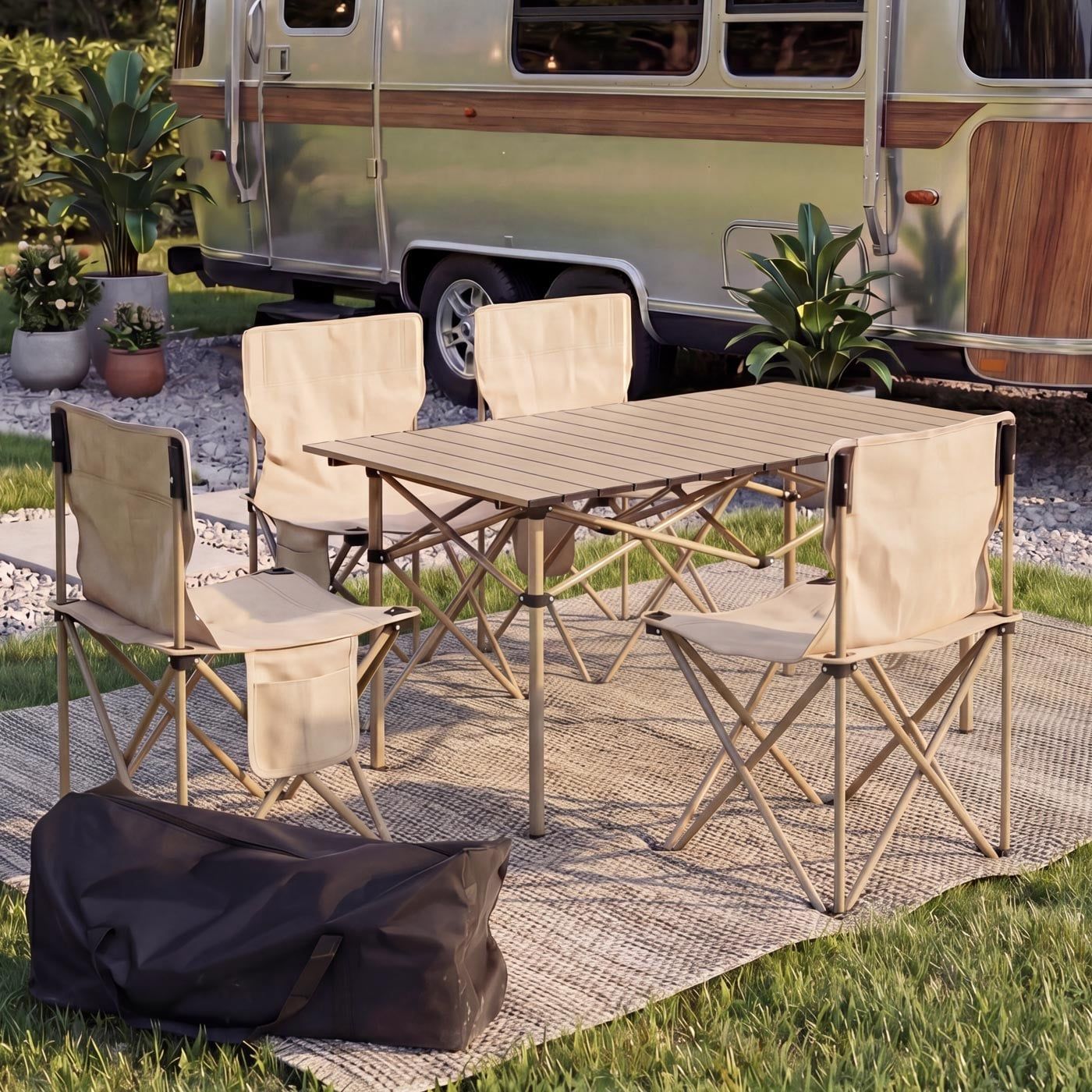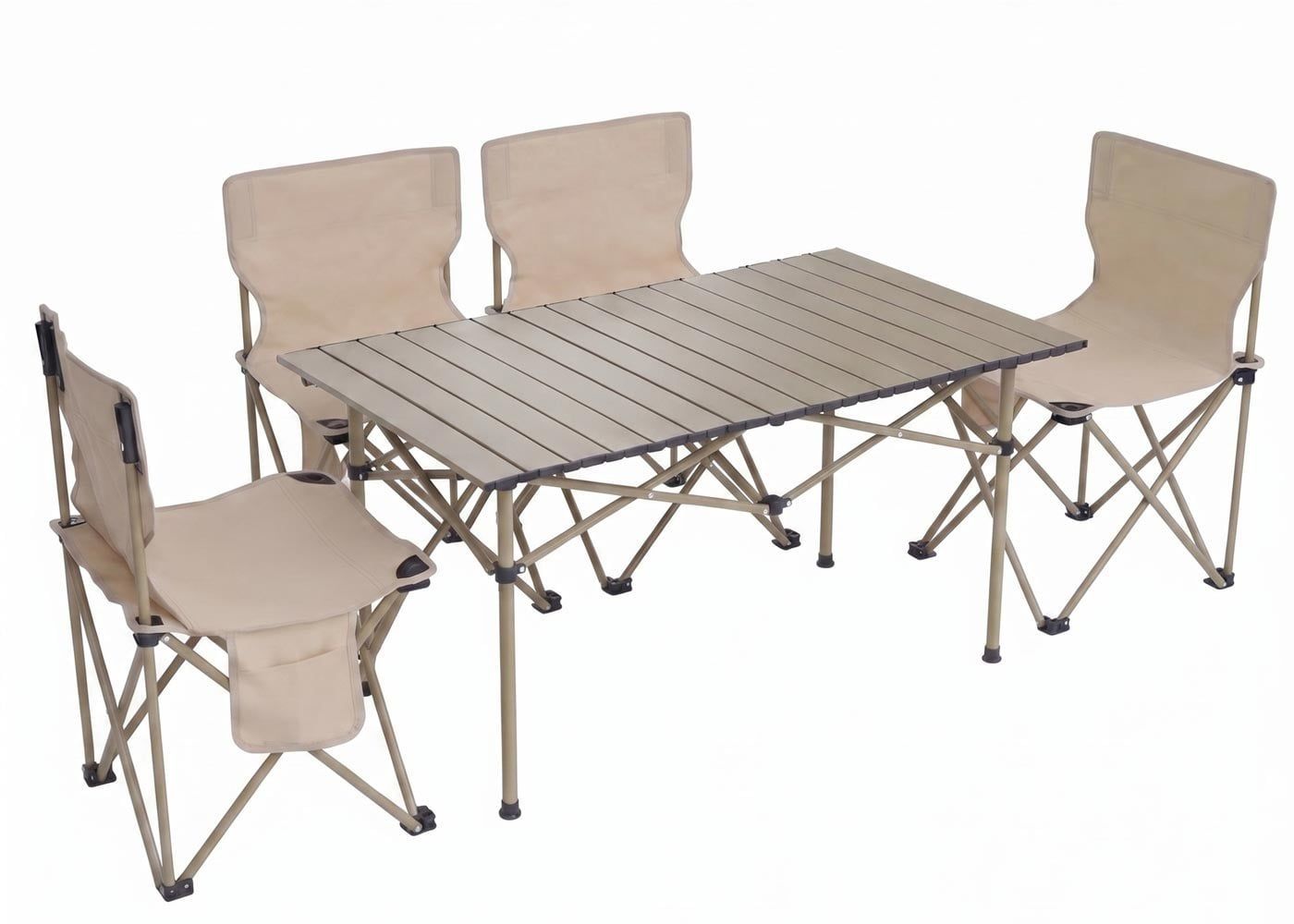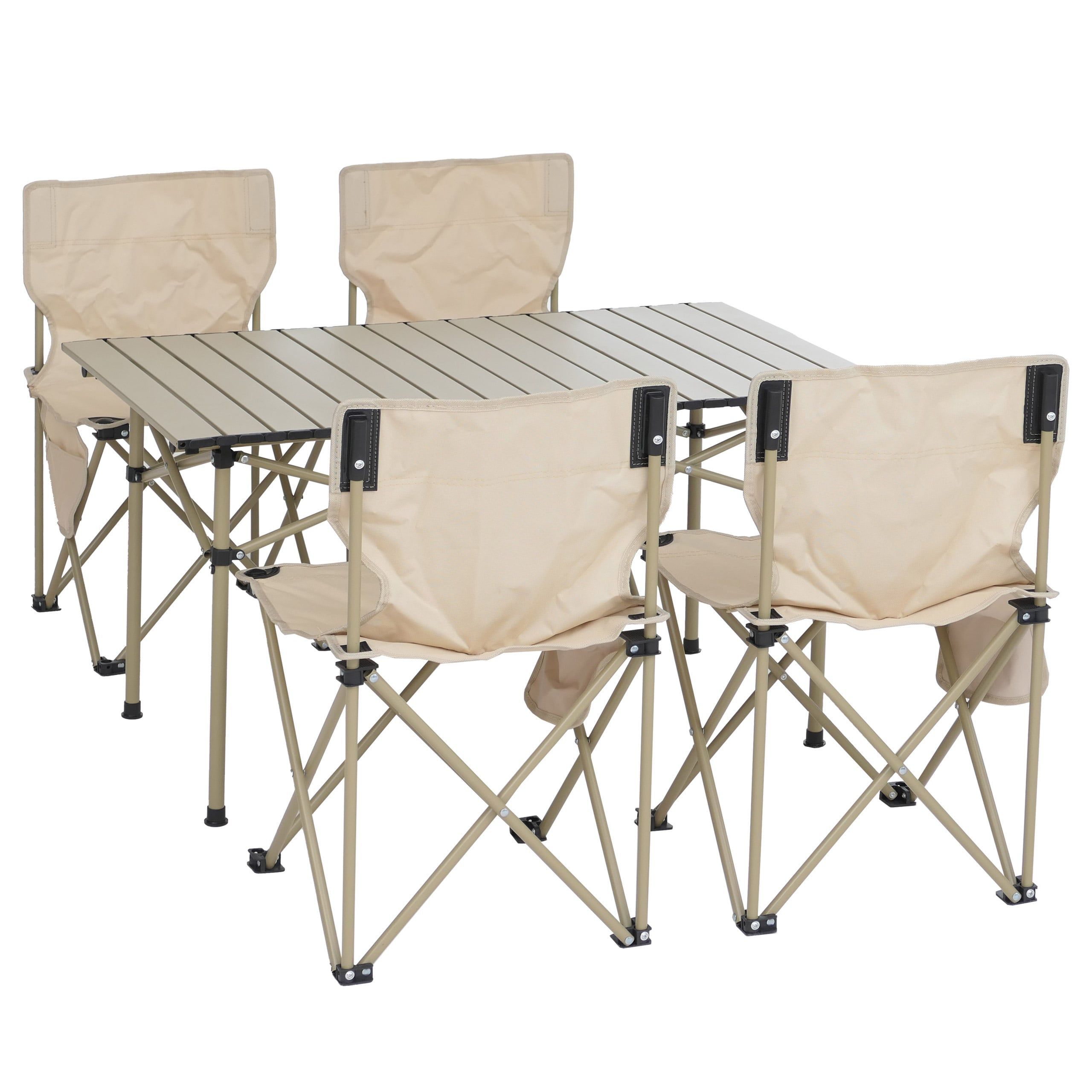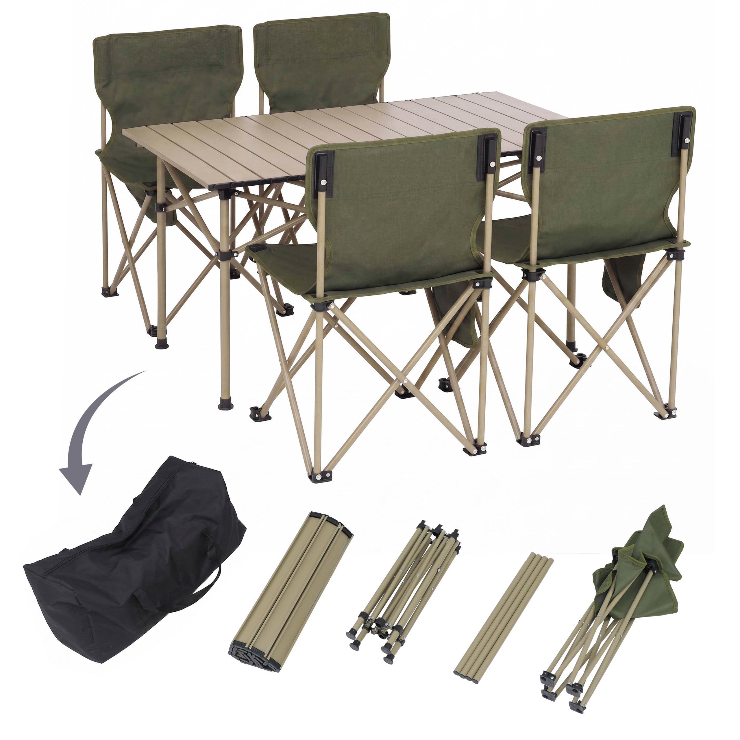 Mendler Campingset HWC-Q39, Tisch 4x Stuhl Klappstuhl Anglerstuhl faltbar, Metall Stoff