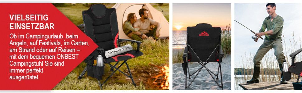 Campingstuhl faltbar Klappstuhl Camping Stuhl Hochlehner gepolstert Schwarz Rot