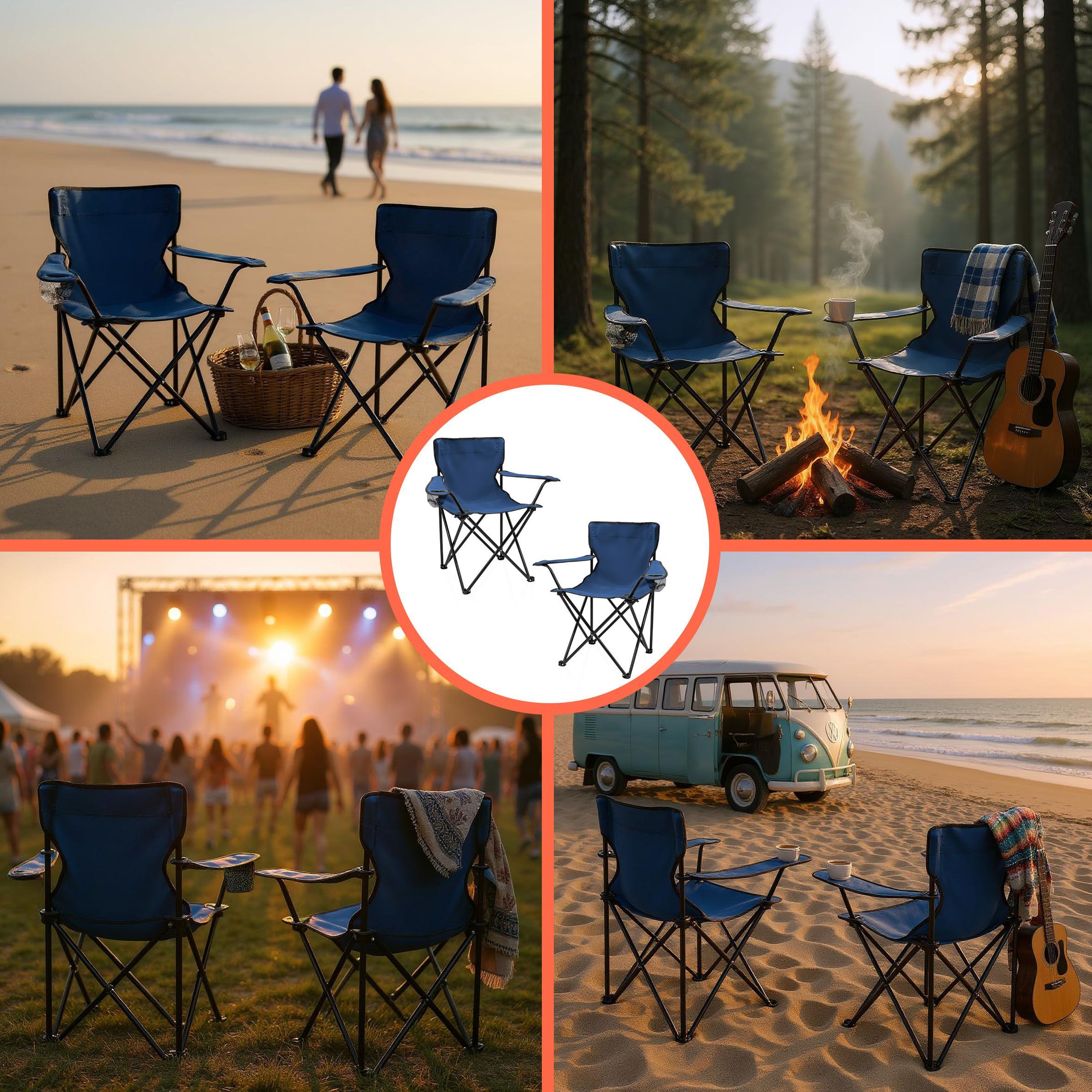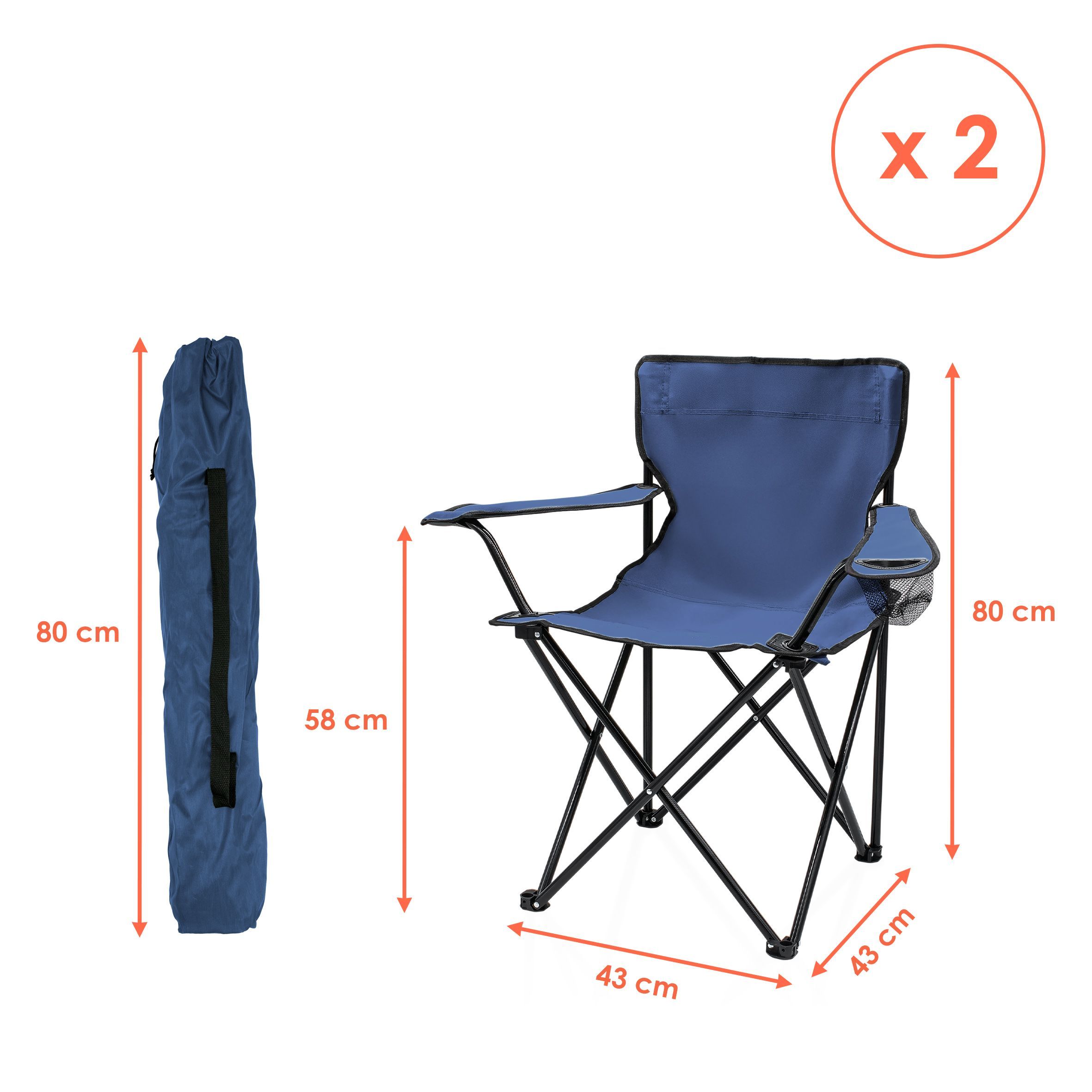 2er Ser klappbarer Campingstuhl in blau mit Getränkehalter und Tragetasche