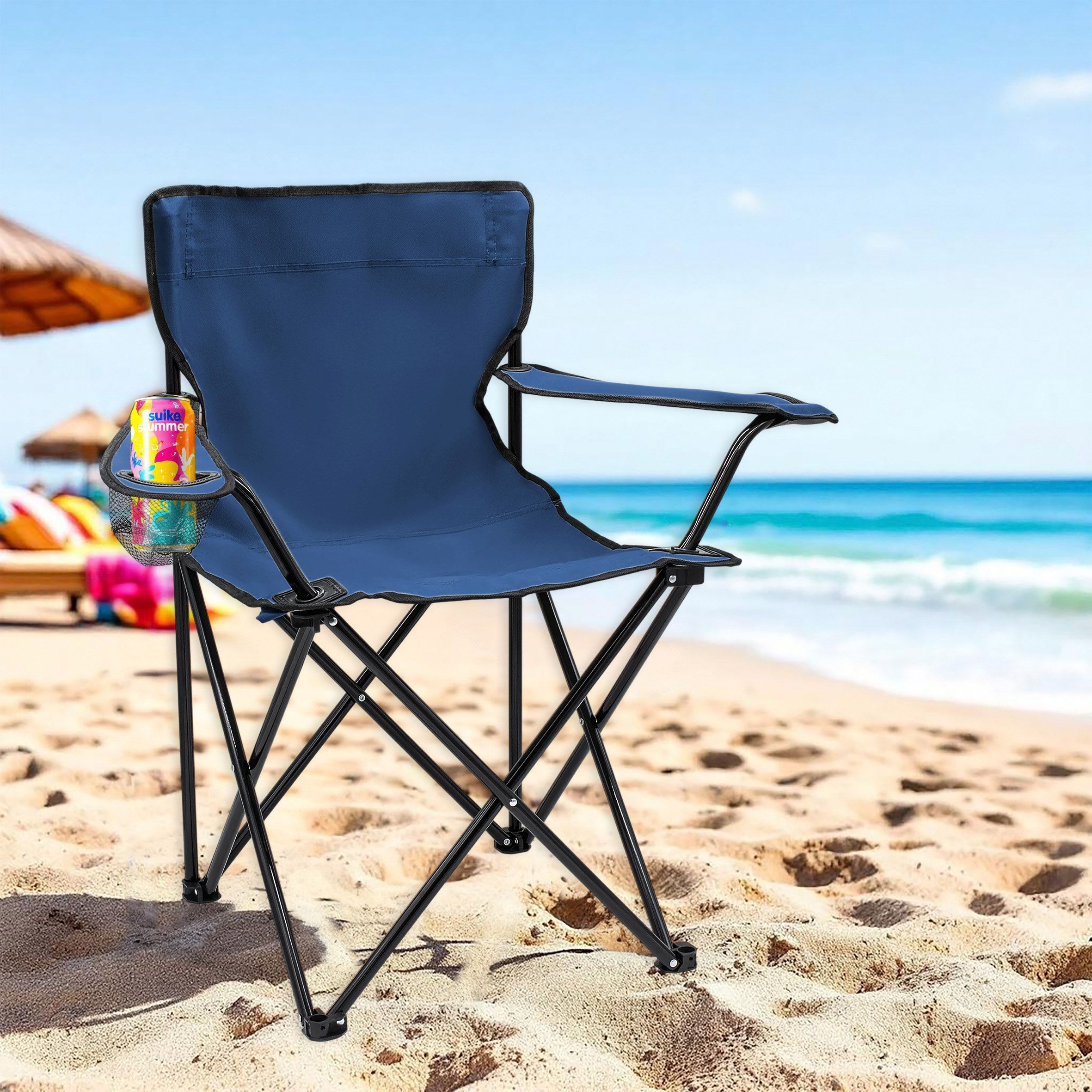 Campingstuhl m. Getränke Halter 2er Set -blau- Garten Strand Camping Klapp Stuhl