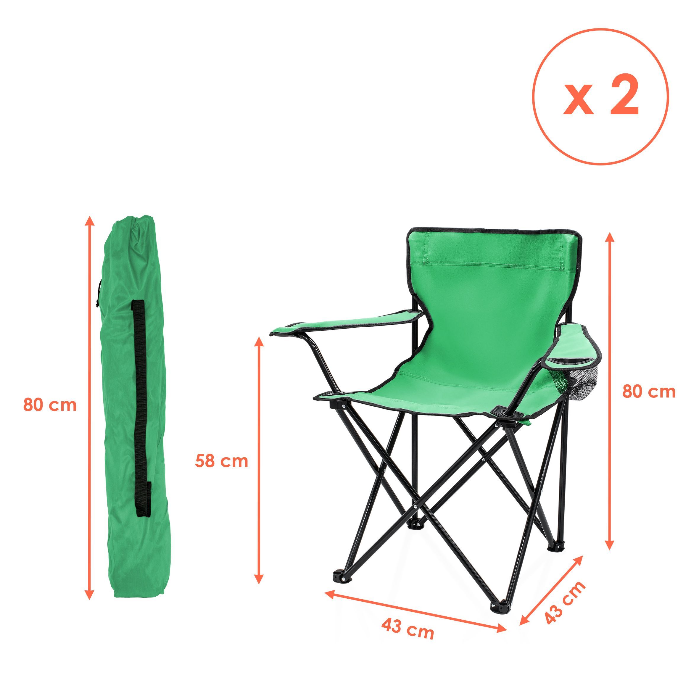 Campingstuhl m. Getränke Halter 2er Set -limegrün- Garten Strand Camping Klapp Stuhl