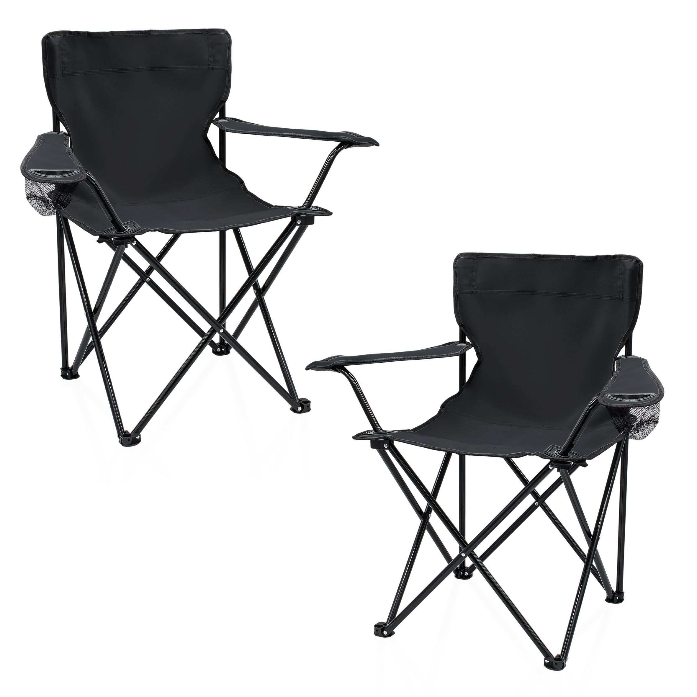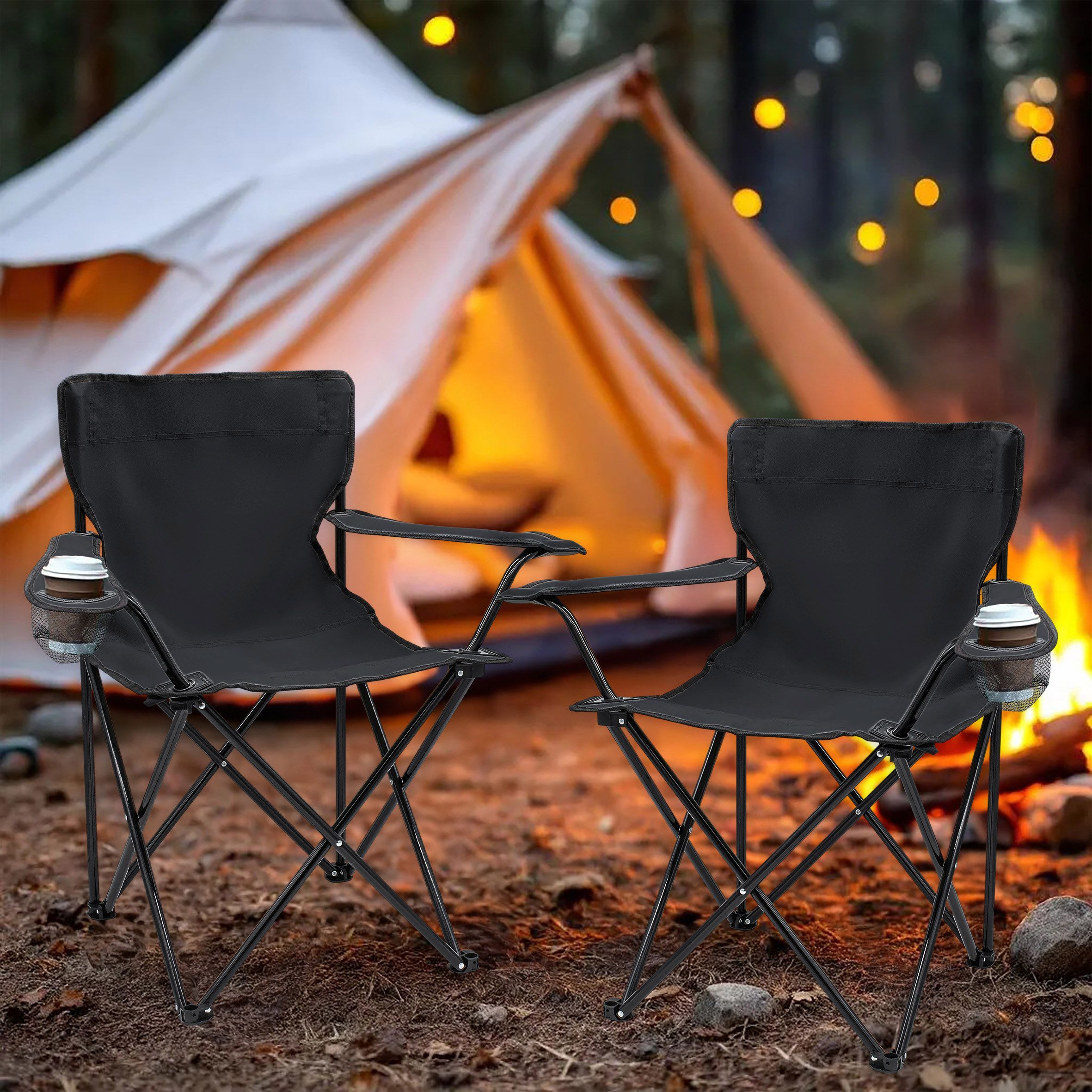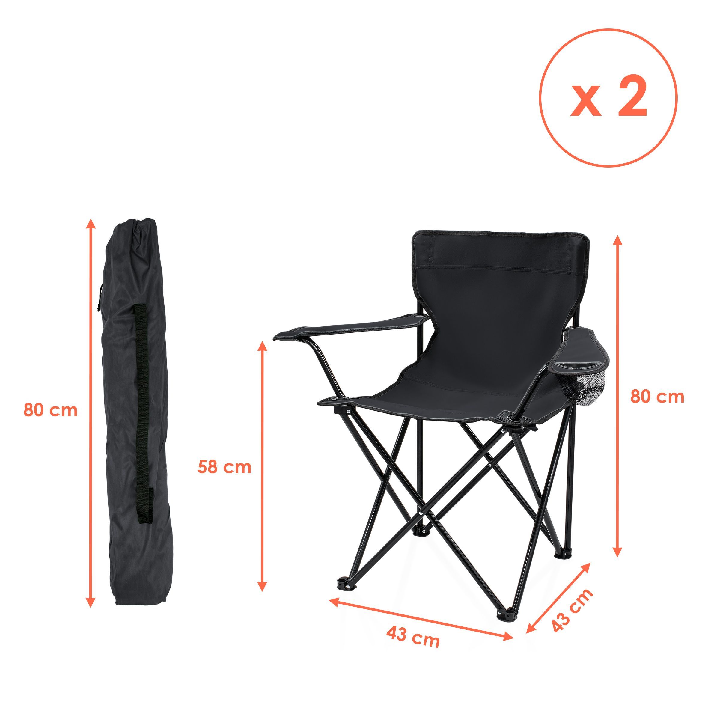 2er Ser klappbarer Campingstuhl in schwarz mit Getränkehalter und Tragetasche