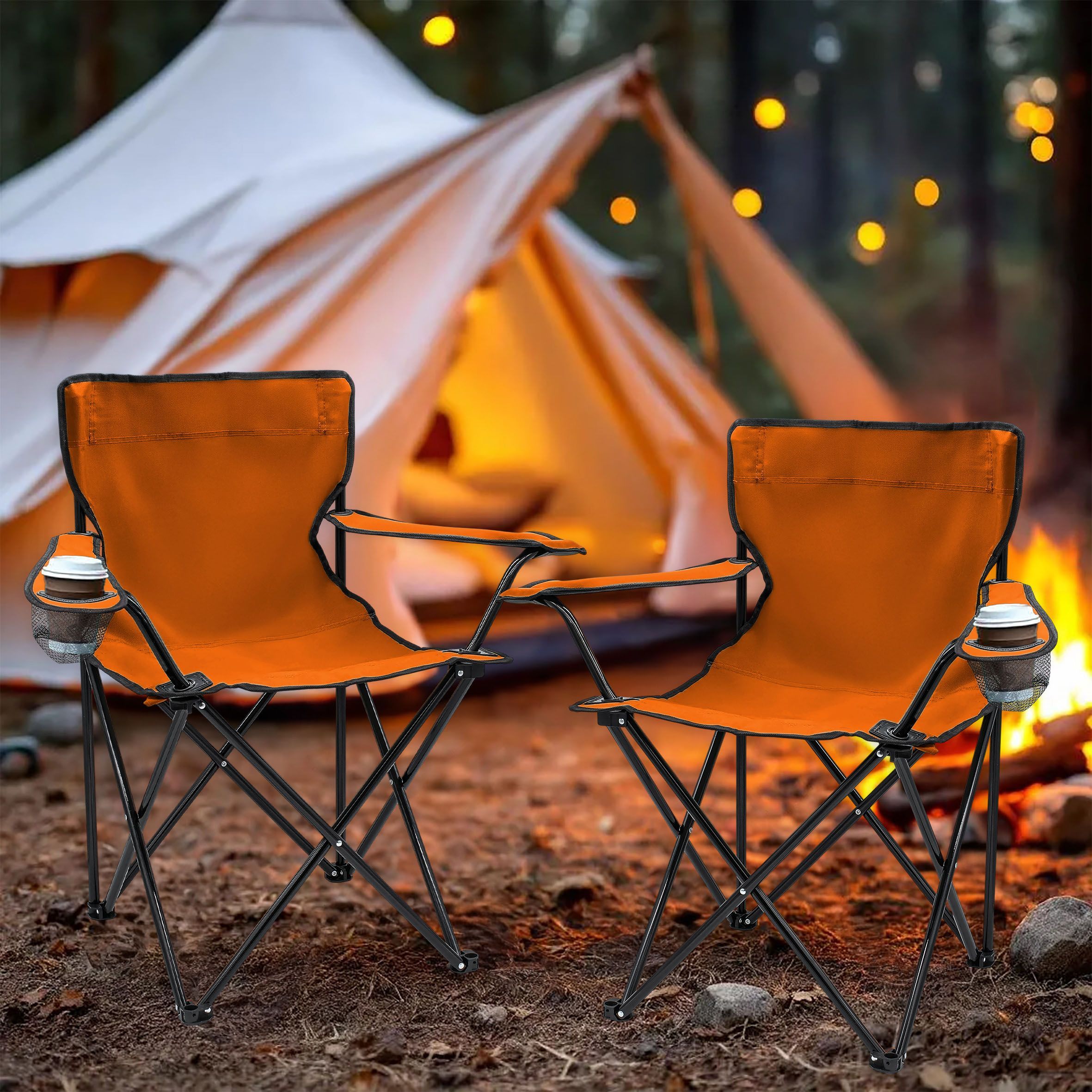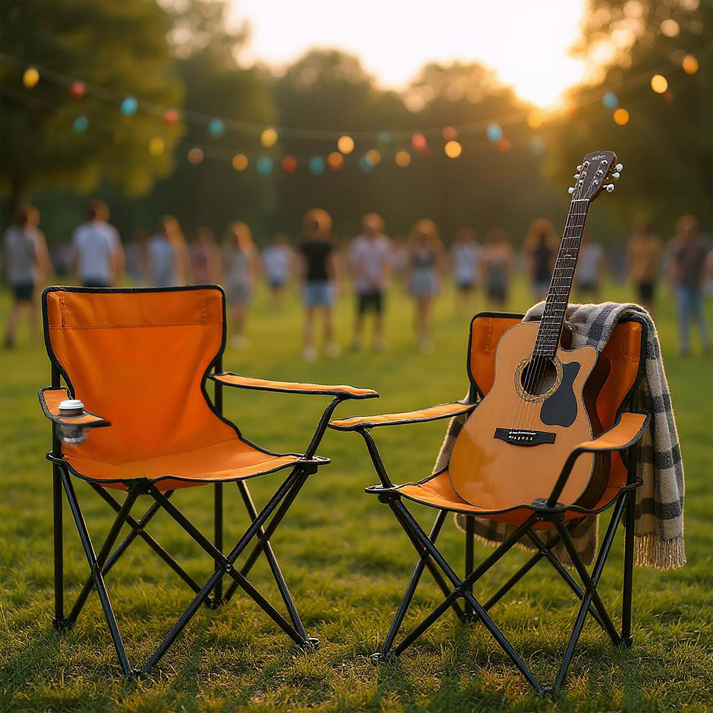 Campingstuhl mit Getränkehalter - orange - Garten Strand Camping Angel Klapp Stuhl
