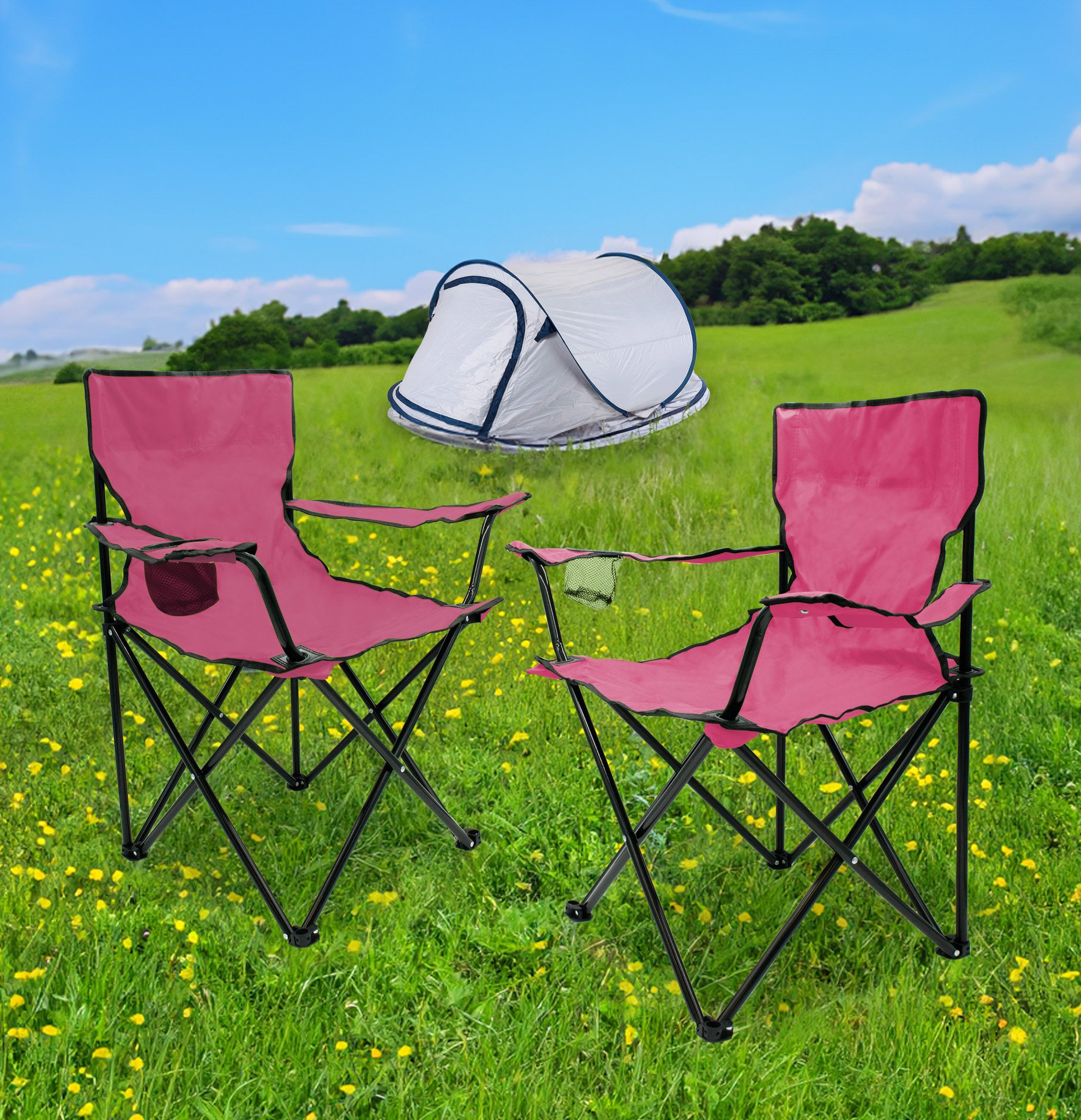 Campingstuhl mit Getränkehalter - pink - Garten Strand Camping Angel Klapp Stuhl