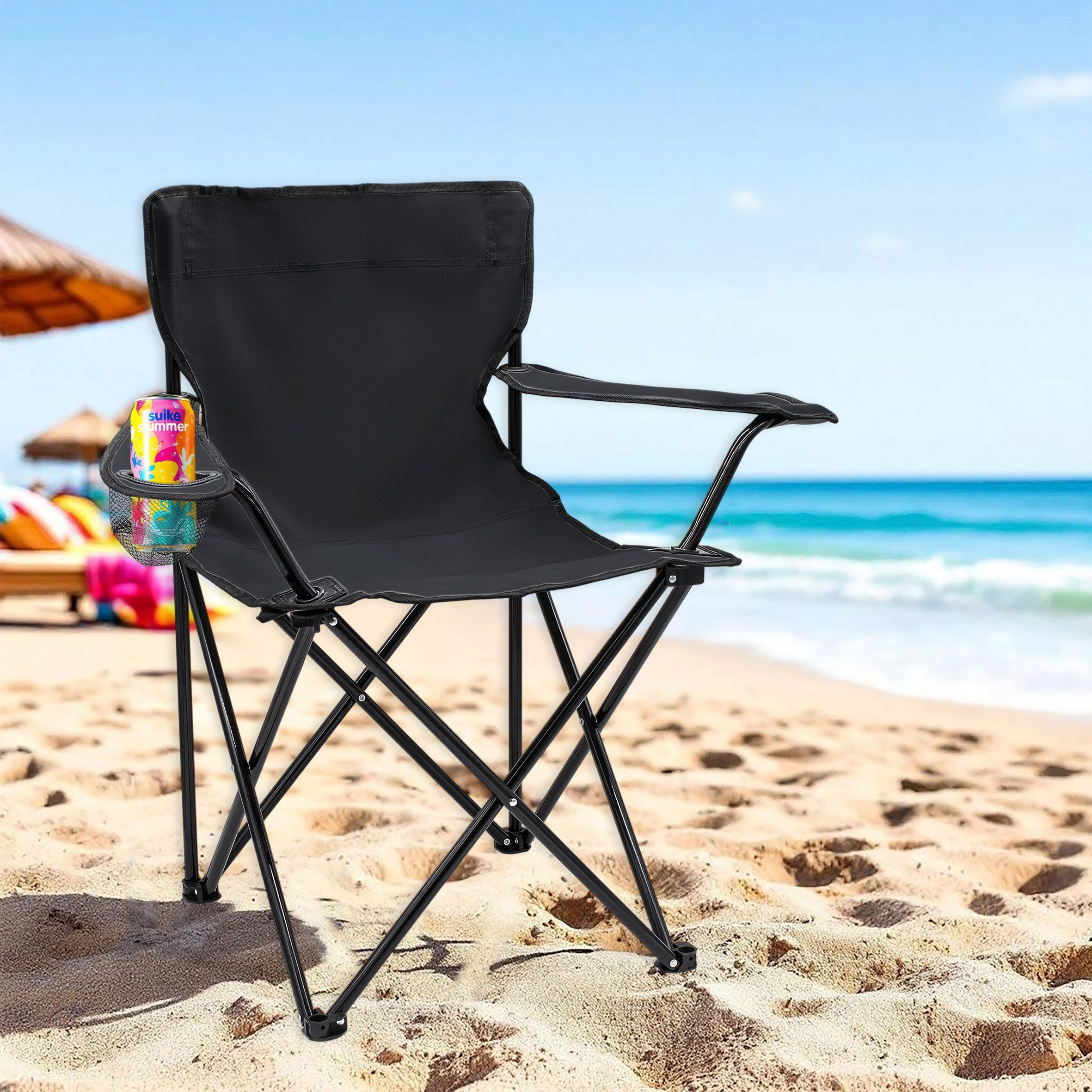 Campingstuhl mit Getränkehalter - schwarz - Garten Strand Camping Angel Klapp Stuhl