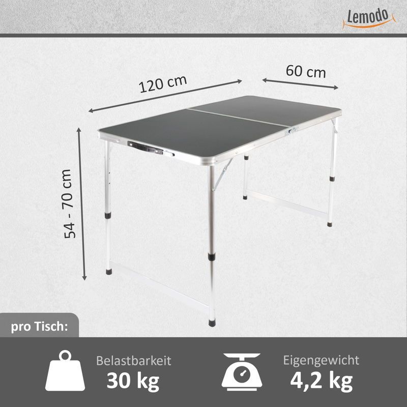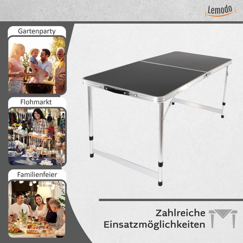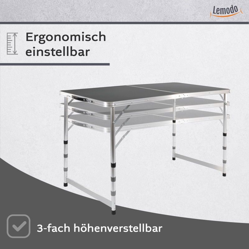 Campingtisch höhenverstellbar, Klapptisch 120 x 60 cm, Tapeziertisch