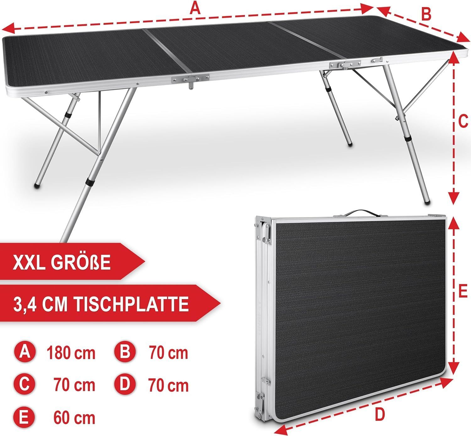 • Klappbarer Tisch Campixx Schwarz 180cm klappbar Campingtisch Klapptisch