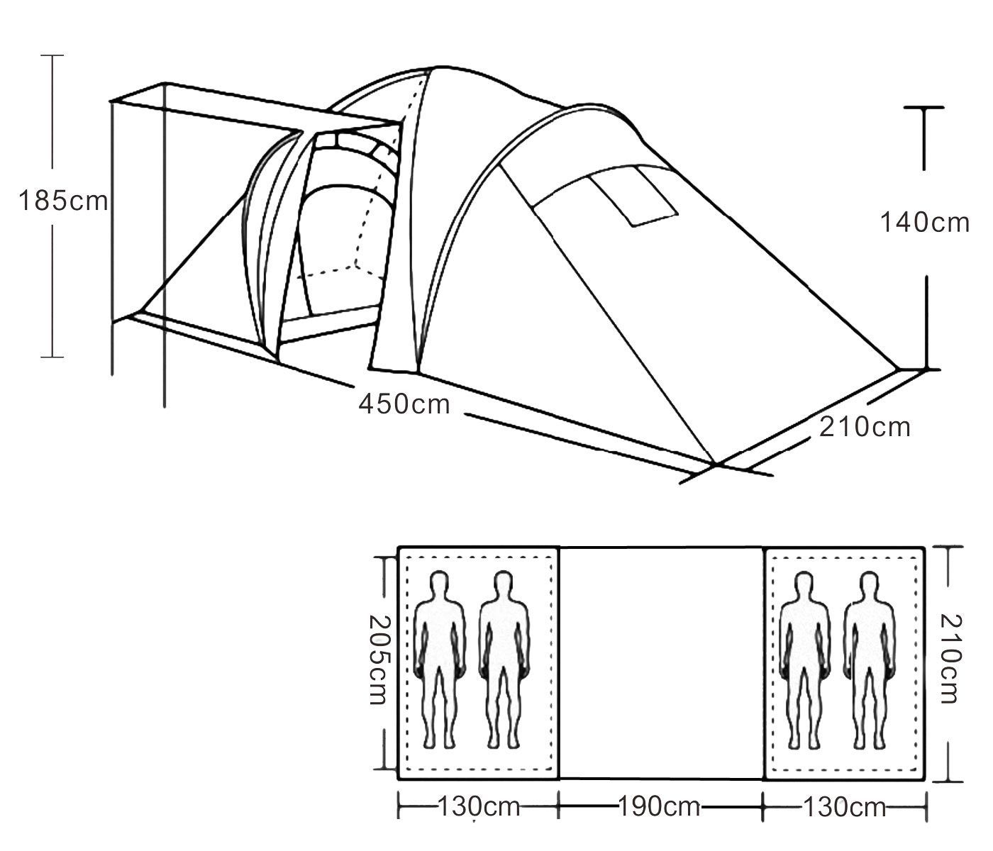 Mendler Campingzelt Loksa, 4-Mann Zelt Kuppelzelt Igluzelt Festival-Zelt, 4 Personen