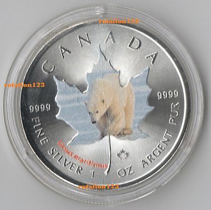 Canada 5 Dollar 2014 Wildlife Serie I Polarbär Silber Farbe
