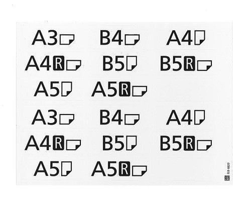 CANON Beschriftungsset mit 18 Aufklebern für imageRUNNER Advance Drucker Papierkassetten. Auch geeignet für Papierfächer anderer Hersteller. Abmessungen: je 50 x 20 mm Inhalt: 2x A3, 2x B4, 2x A4, 2x A4R, 2x B5, 2x B5R, 2x A5, 2x A5R, 2x Blanko Farbe: Hellgrau +++ NEUWARE +++