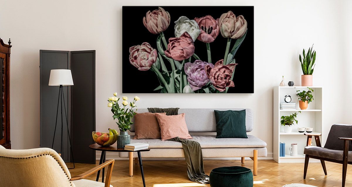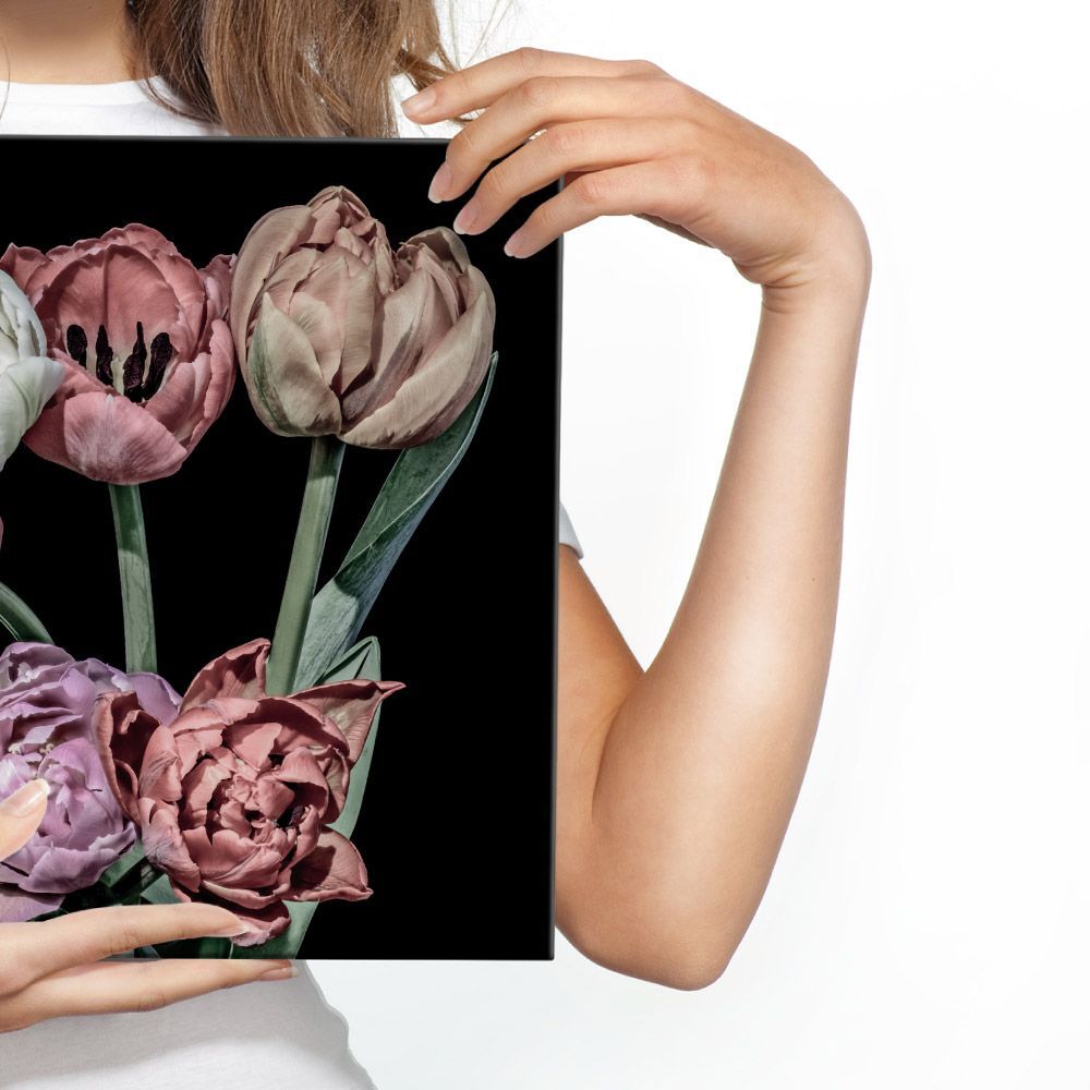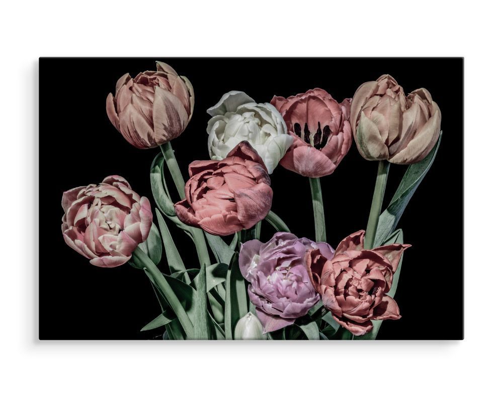 CANVAS Leinwandbild XXL bunte TULPEN auf schwarzem Hintergrund 3D 1888