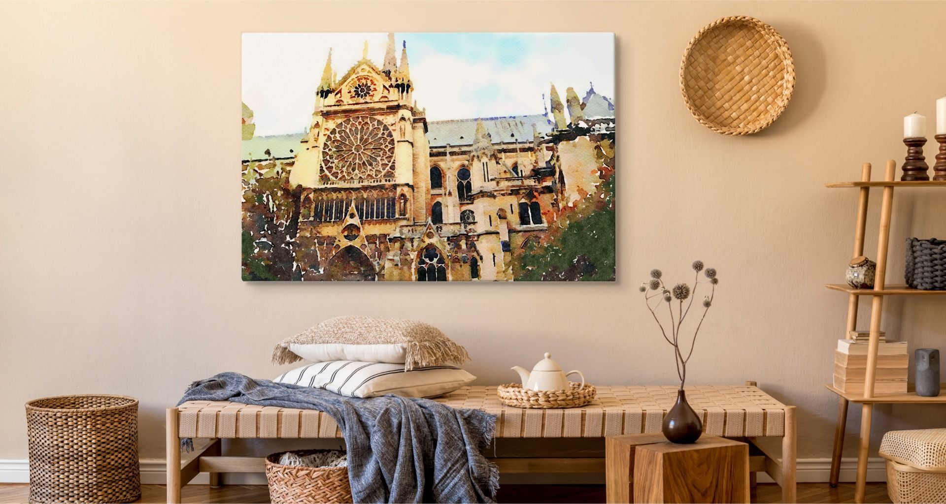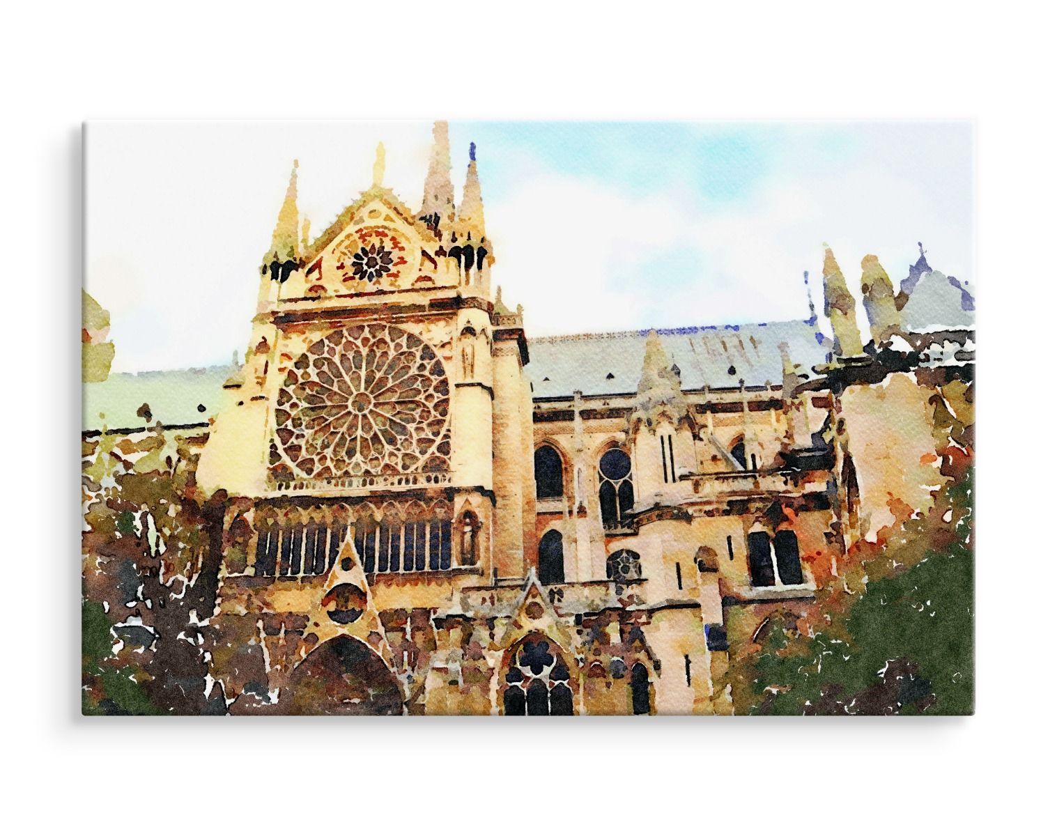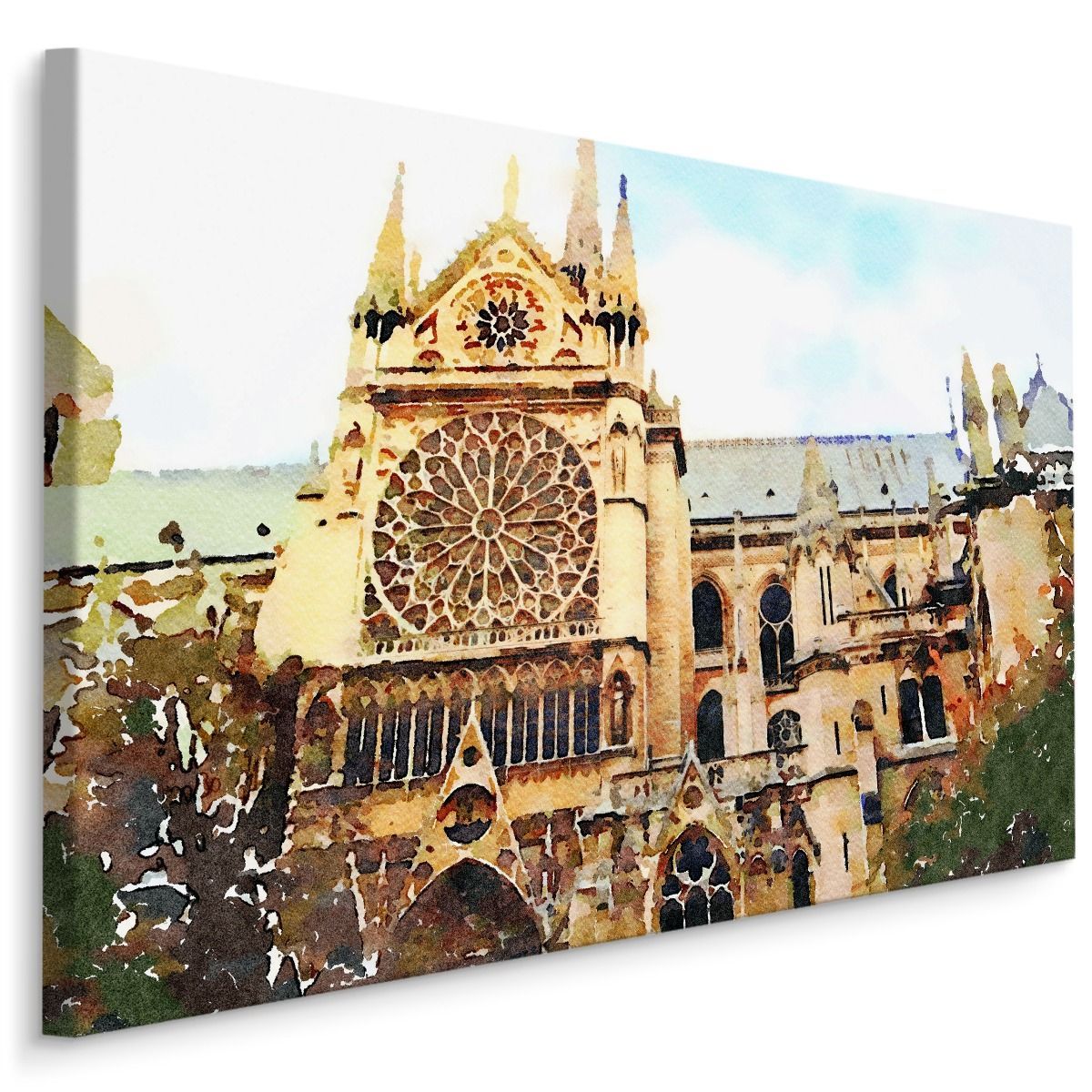 CANVAS Leinwandbild XXL Wandbilder Kathedrale Notre Dame Aquarell 1231