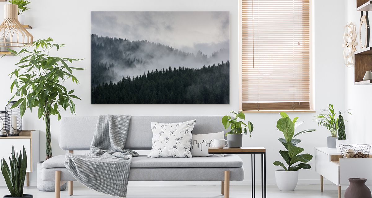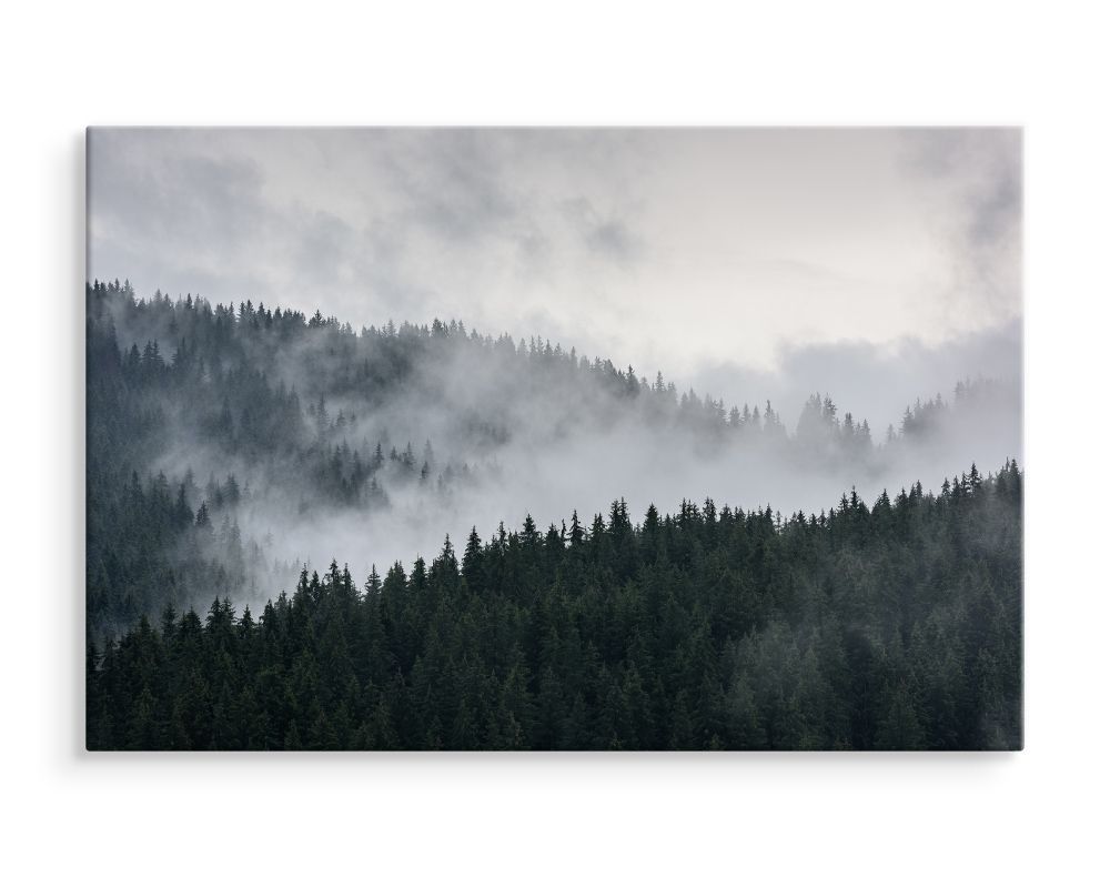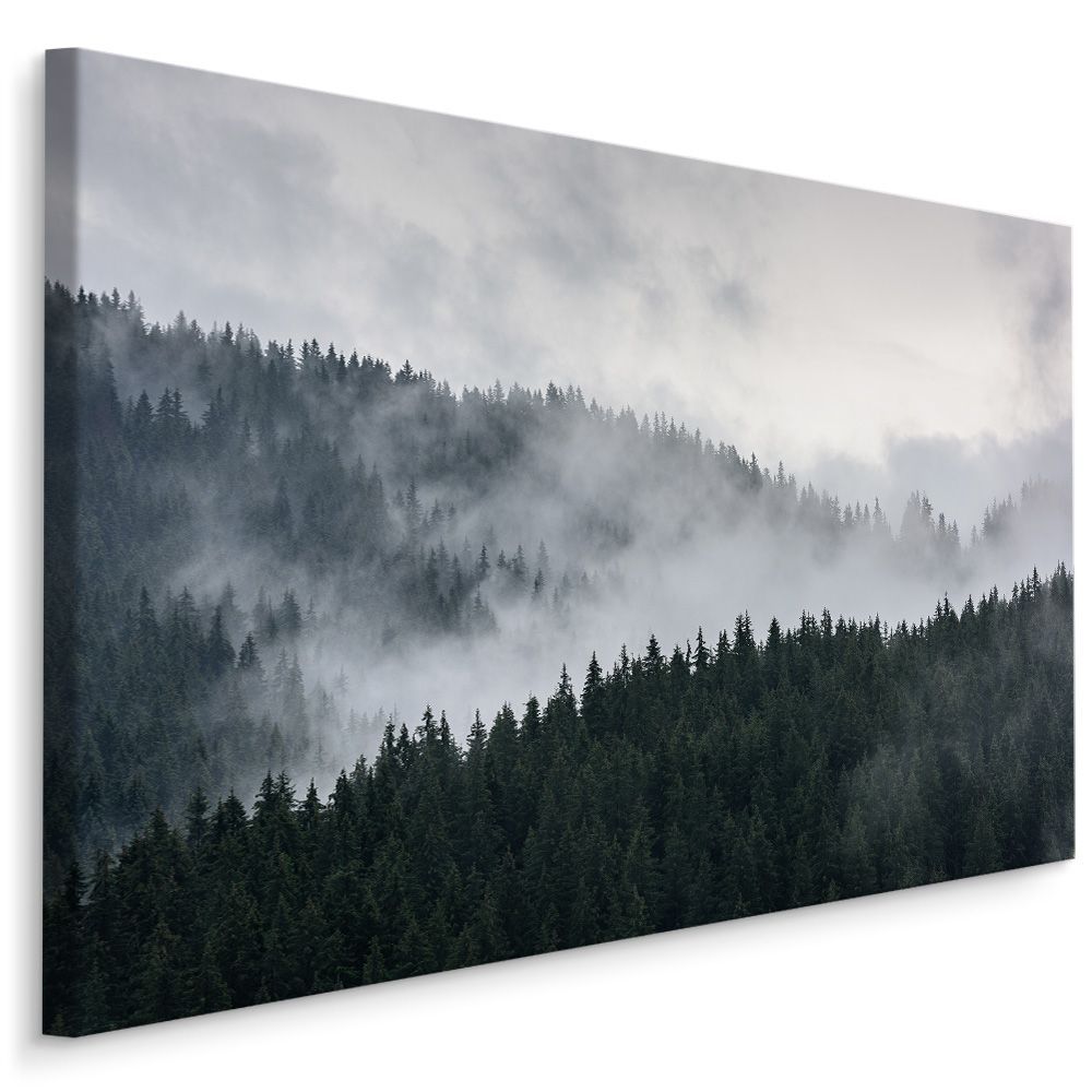 CANVAS Leinwandbild XXL Wandbilder Kunstdruck nebliger Kiefernwald 347