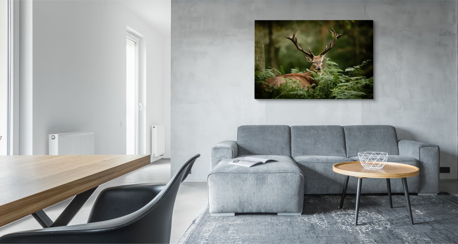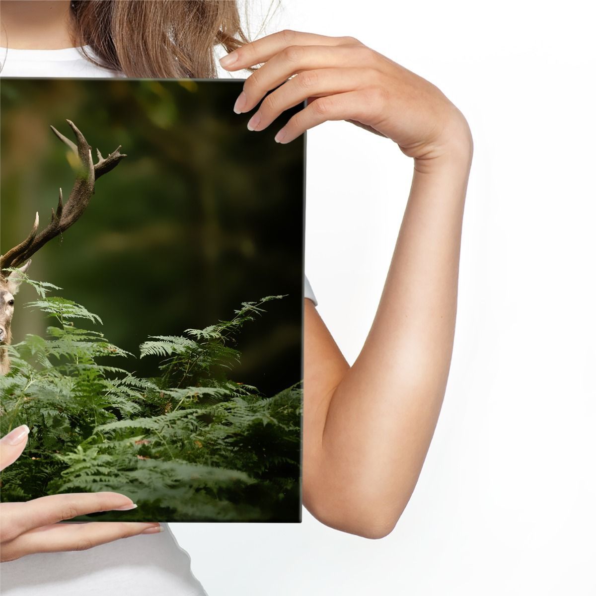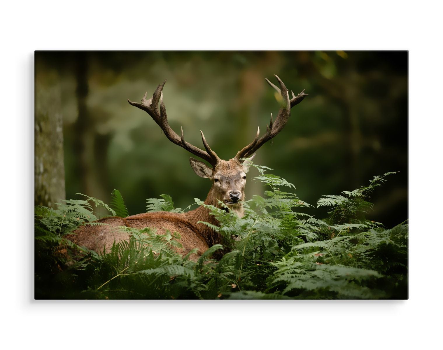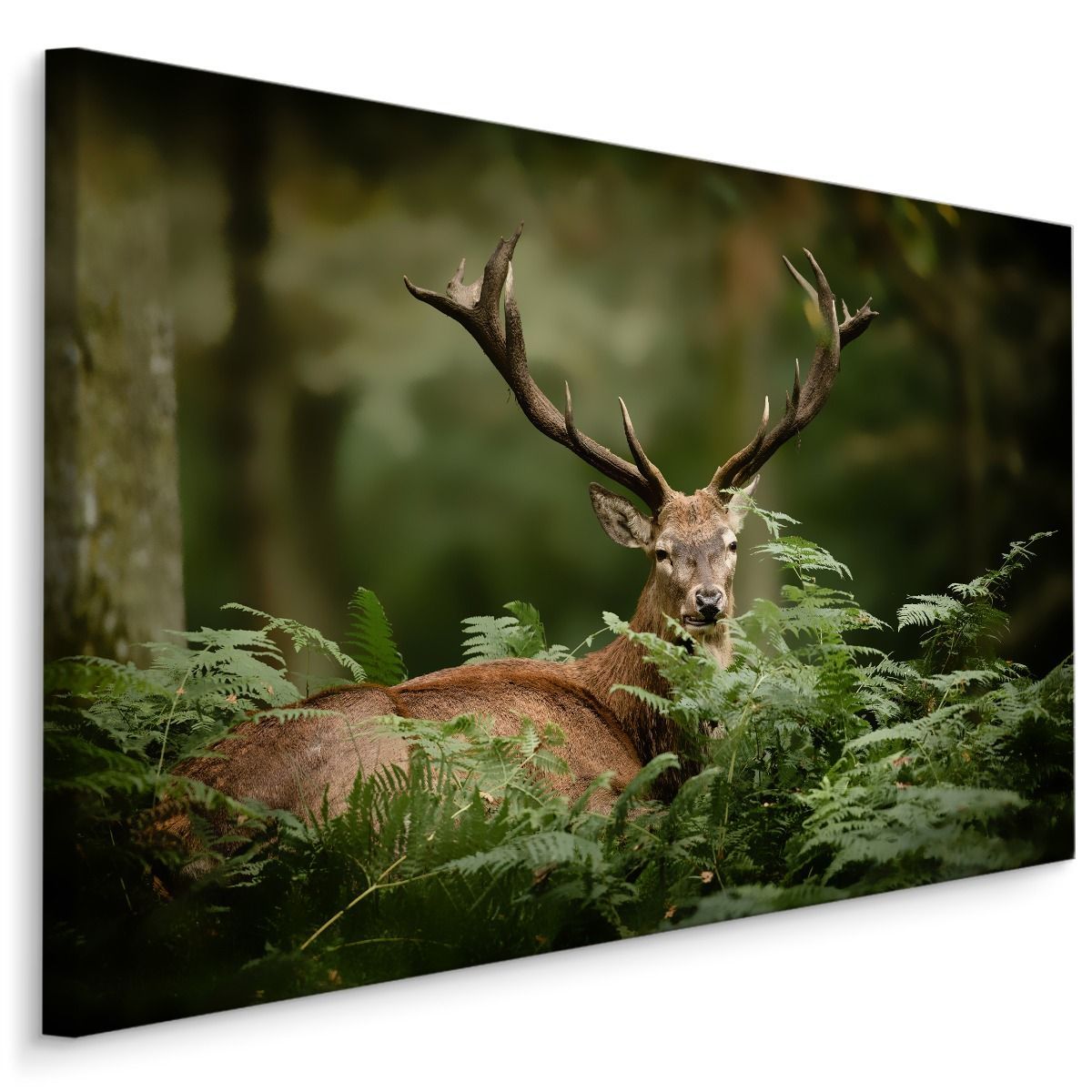 CANVAS Leinwandbild XXL Wandbilder Wohnzimmer Hirsch grün Wald Natur 864
