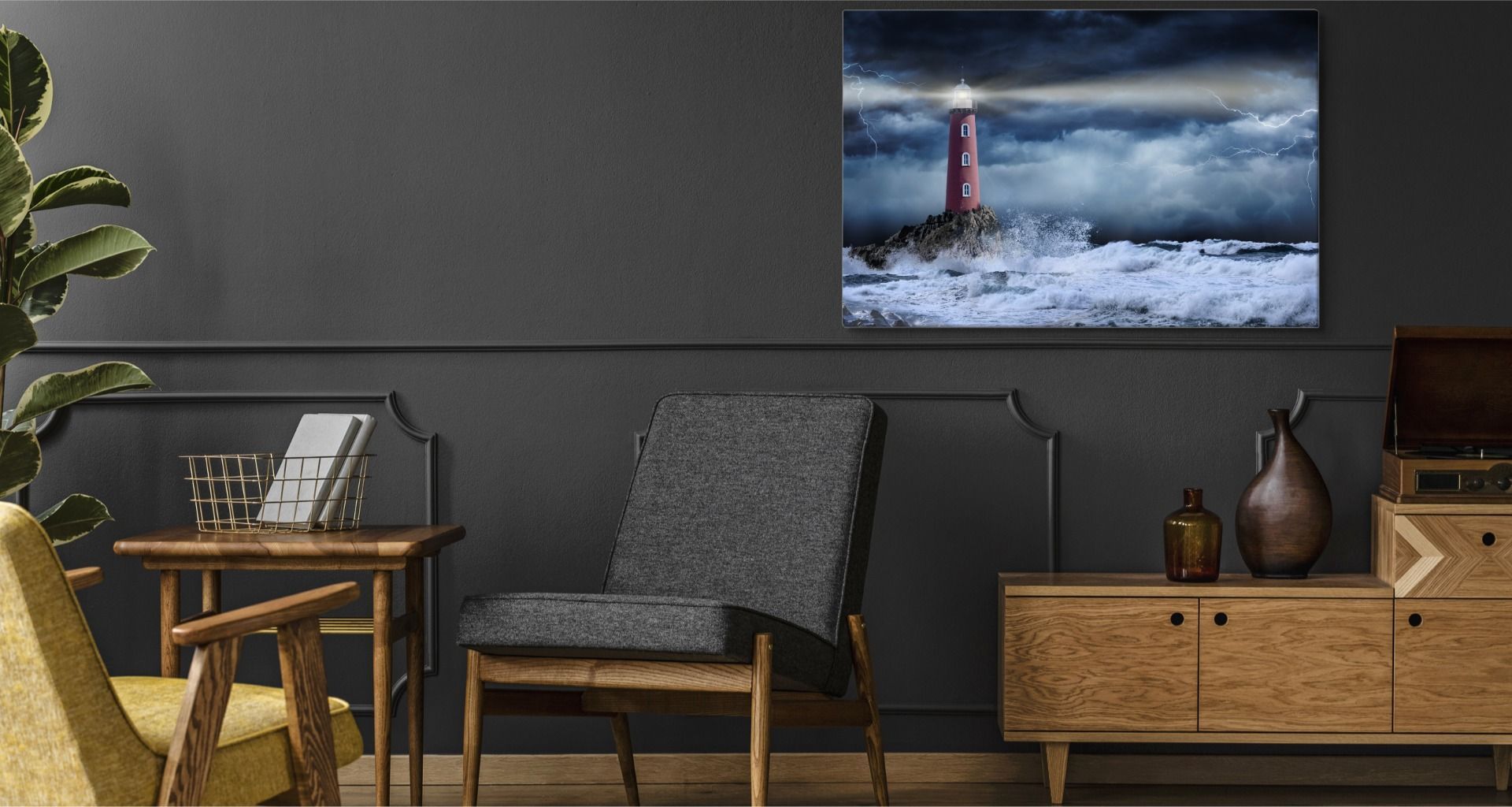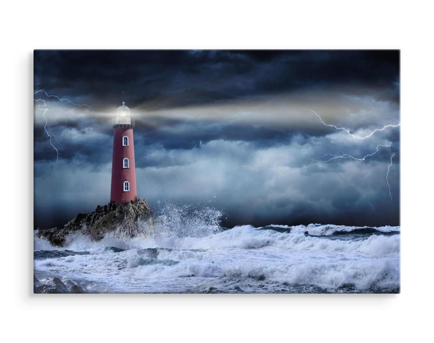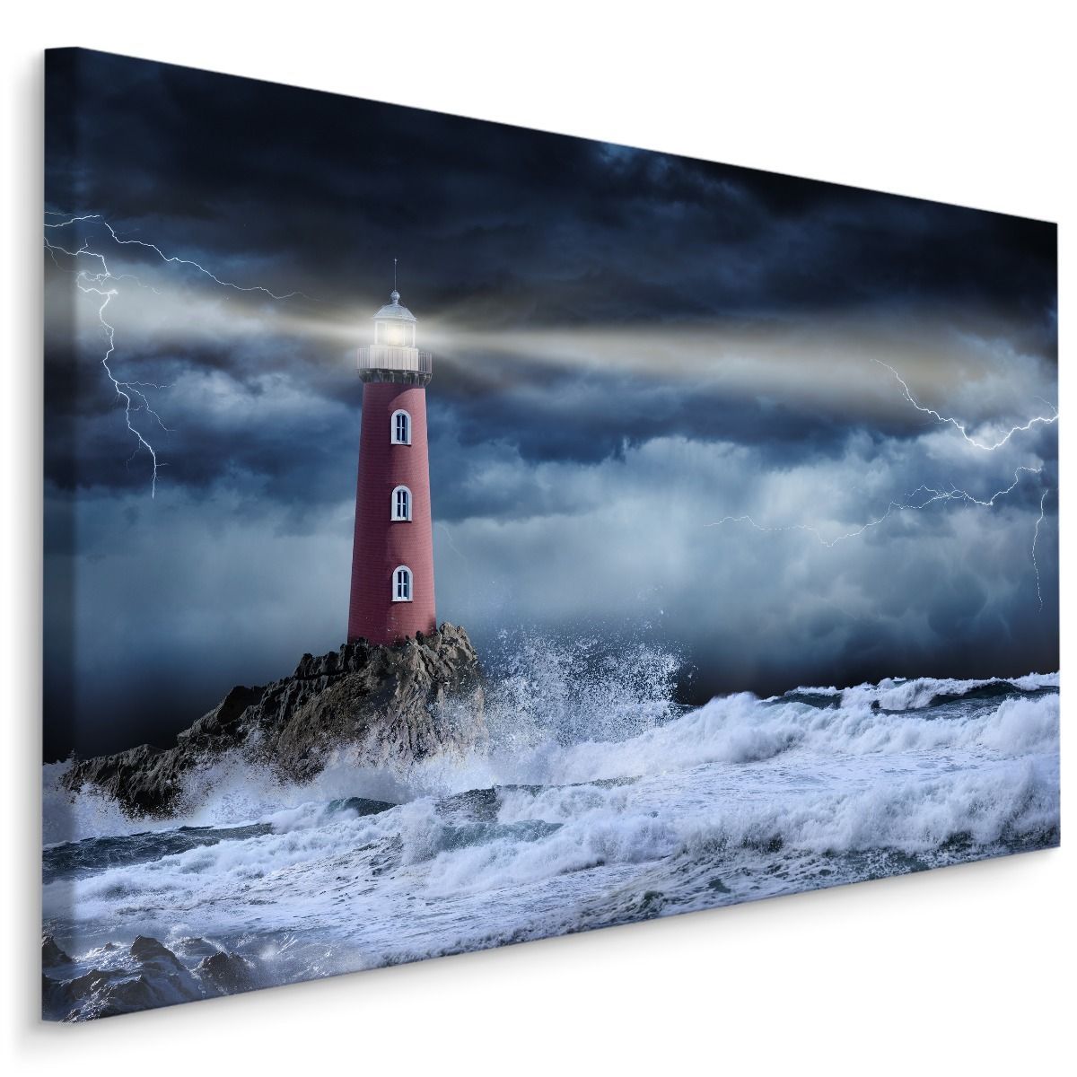 CANVAS Leinwandbild XXL Wandbilder Wohnzimmer Meer Gewitter Leuchtturm 678