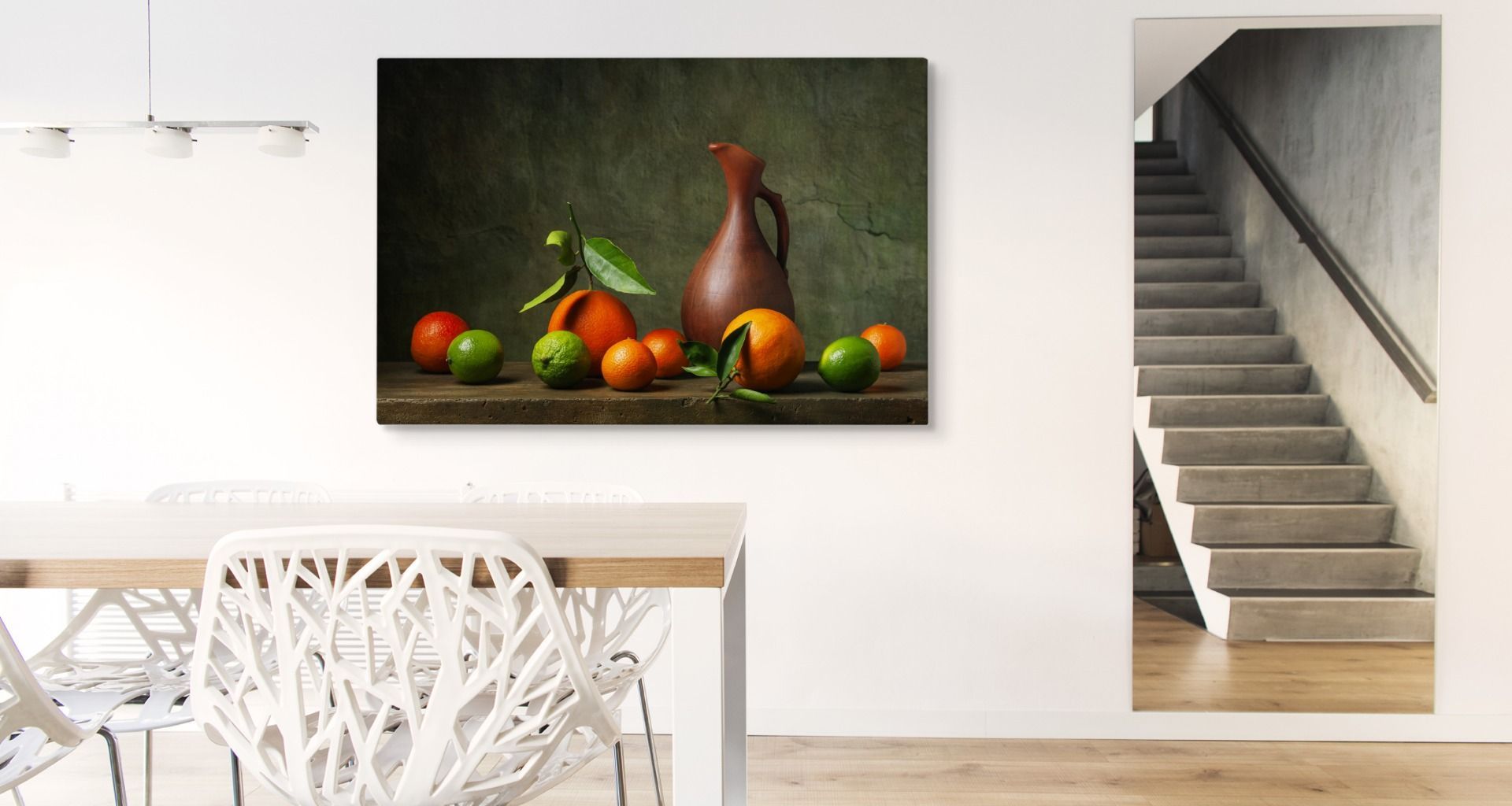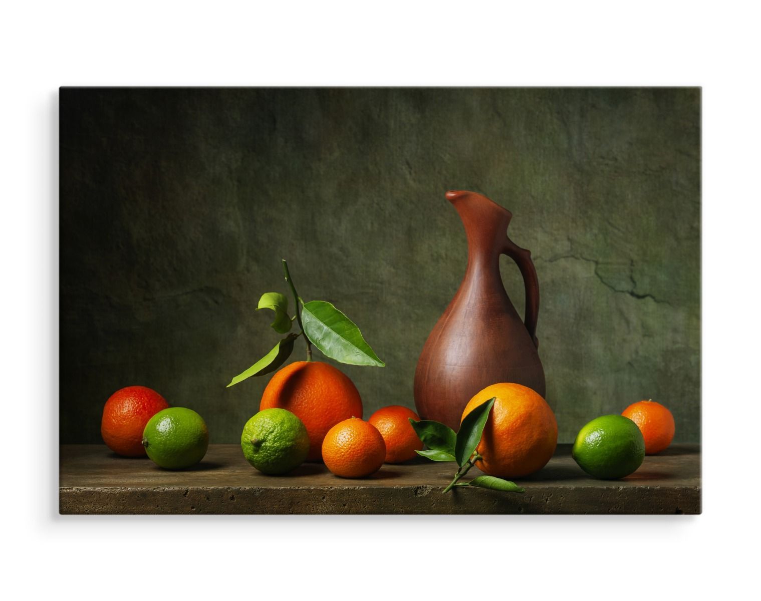 CANVAS Leinwandbild XXL Wandbilder Wohnzimmer Orangen Zitronen Blätter 716