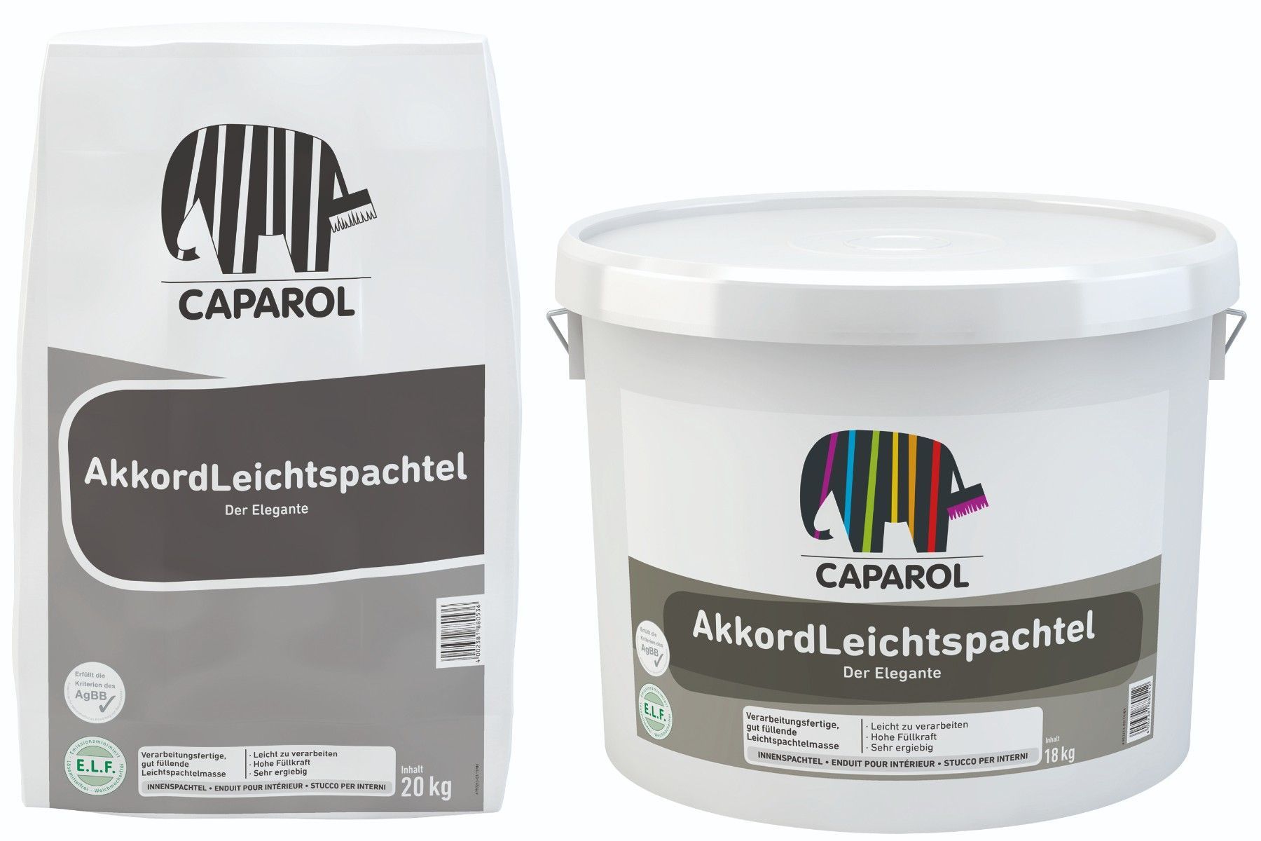 Caparol AkkordLeichtspachtel Eimerware 18 kg naturweiß Details für AkkordLeichtspachtel Eimerware 18 kg naturweiß: Verwendungszweck: Spritz- und spachtelfertig eingestellte pastöse Spachtelmasse mit sehr geringem Eigengewicht und hohem Schichtdickenauftrag, der sich bis auf Null ausziehen