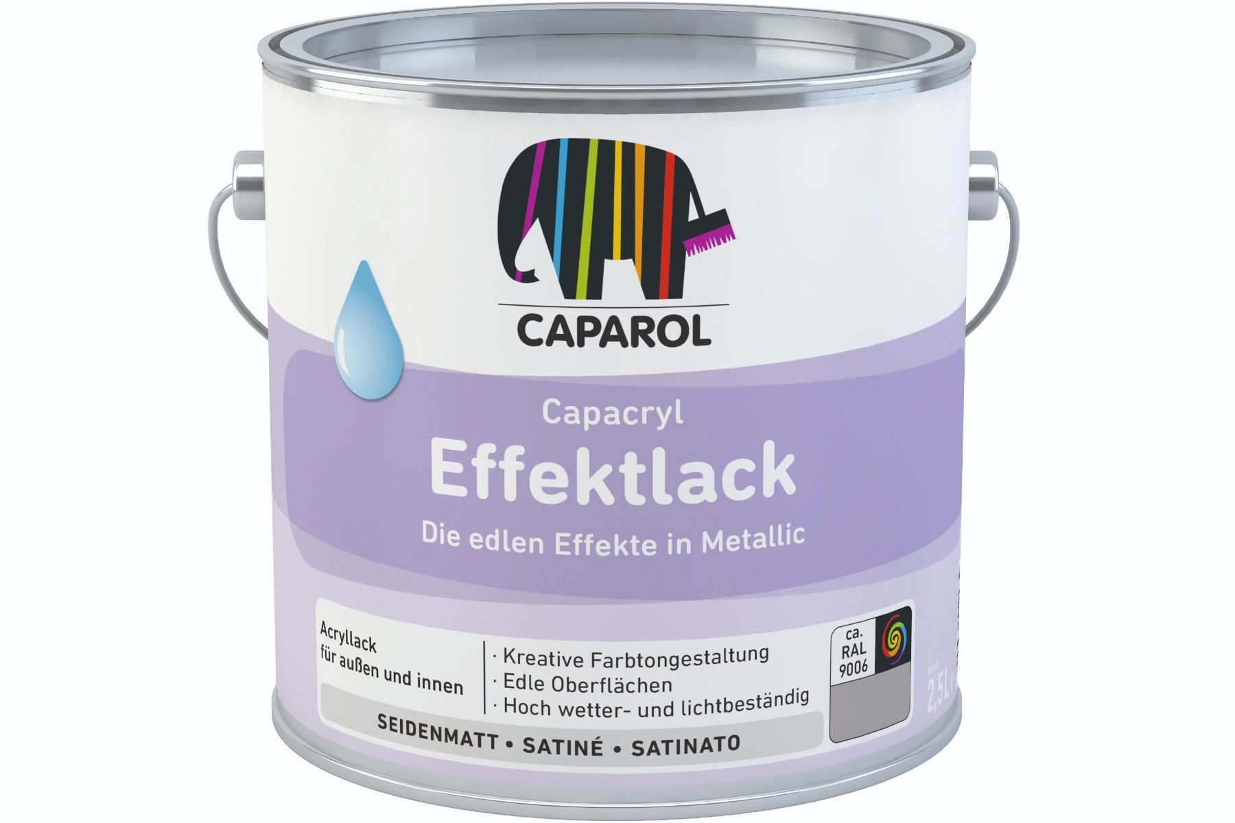 Caparol Capacryl Effektlack 2,5 Liter RAL 9006 Details für Capacryl Effektlack 2,5 Liter RAL 9006: Verwendungszweck: Für hochwertige Zwischen- und Schlusslackierungen im Airless-Spritzverfahren mit dezentem Perleffekt geeignet. Anwendbar im Außen- und Innenbereich. Eigenschaften: - Kreative Farbtong