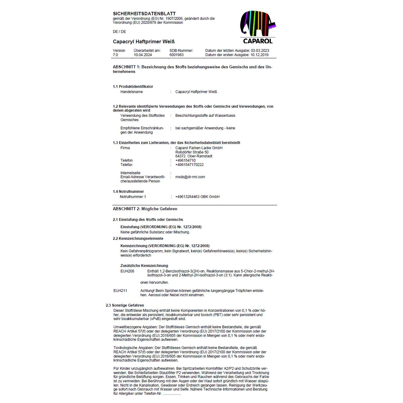 Caparol Capacryl Haftprimer 2.5 LTR Grundierung Holz Zink Aluminium PVC WEISS