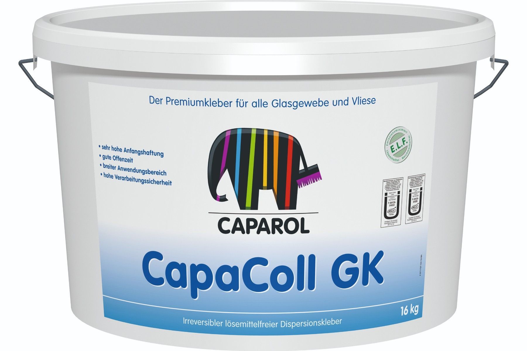 Caparol Capaver CapaColl GK 16 kg weiß transparent Details für Capaver CapaColl GK 16 kg weiß transparent: Lösemittelfreier hoch leistungsfähiger Dispersionsklebstoff für alle Glasgewebe und Vliesbeläge. Verwendungszweck: Gebrauchsfertiger hoch leistungsfähiger Dispersionsklebstoff zur Verklebung al