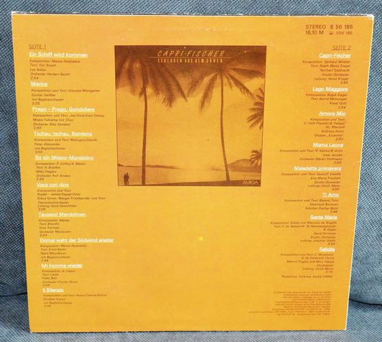 Capri-Fischer, Schlager aus dem Süden, AMIGA 8 56 185 Vinyl LP 1987