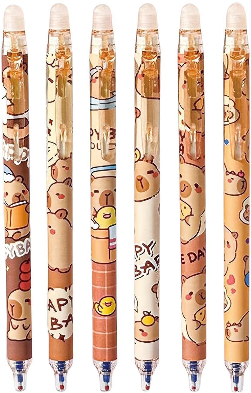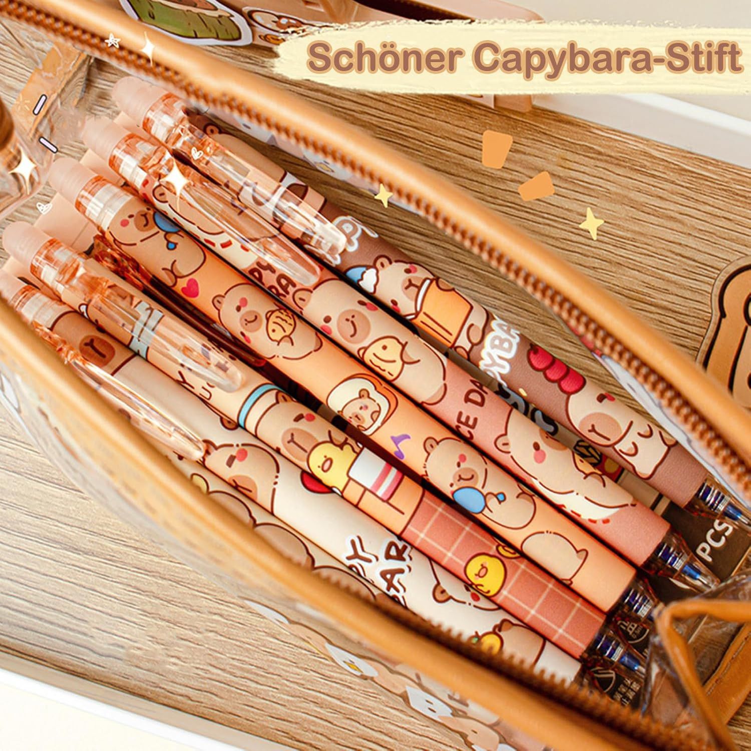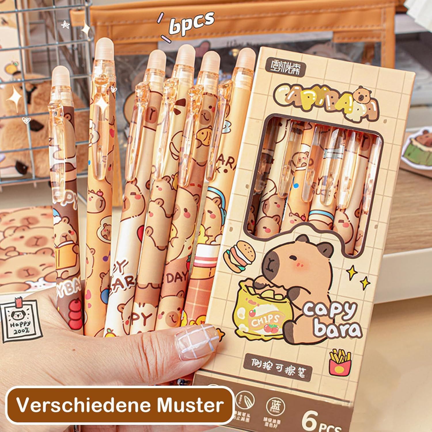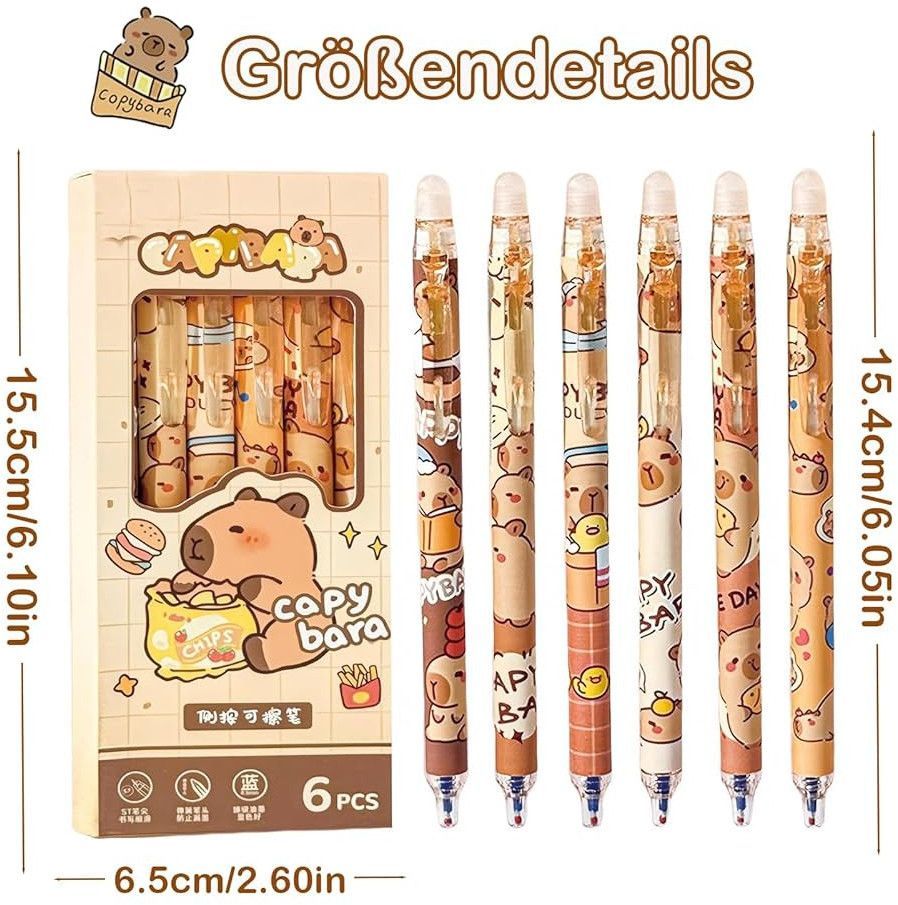 Capybara radierbare Kugelschreiber 6er Set, 0,5mm. Lustige Tier-Cartoon Stifte