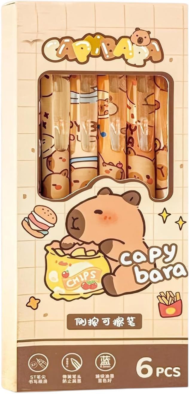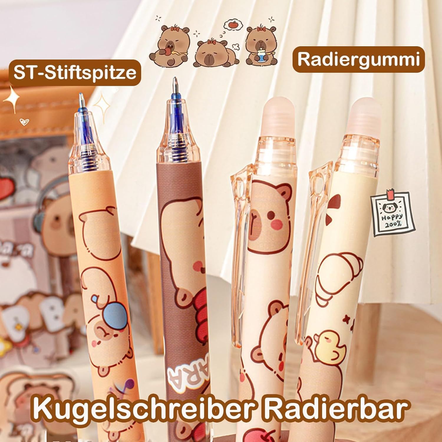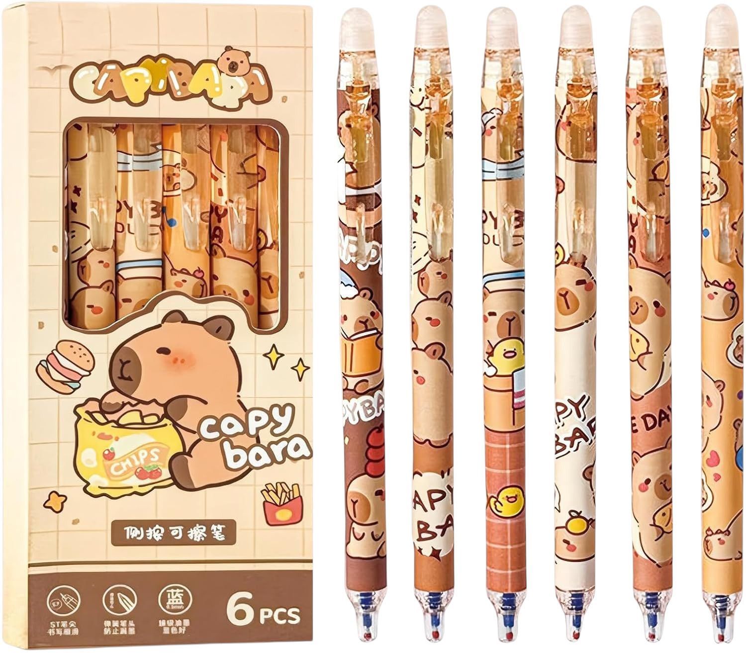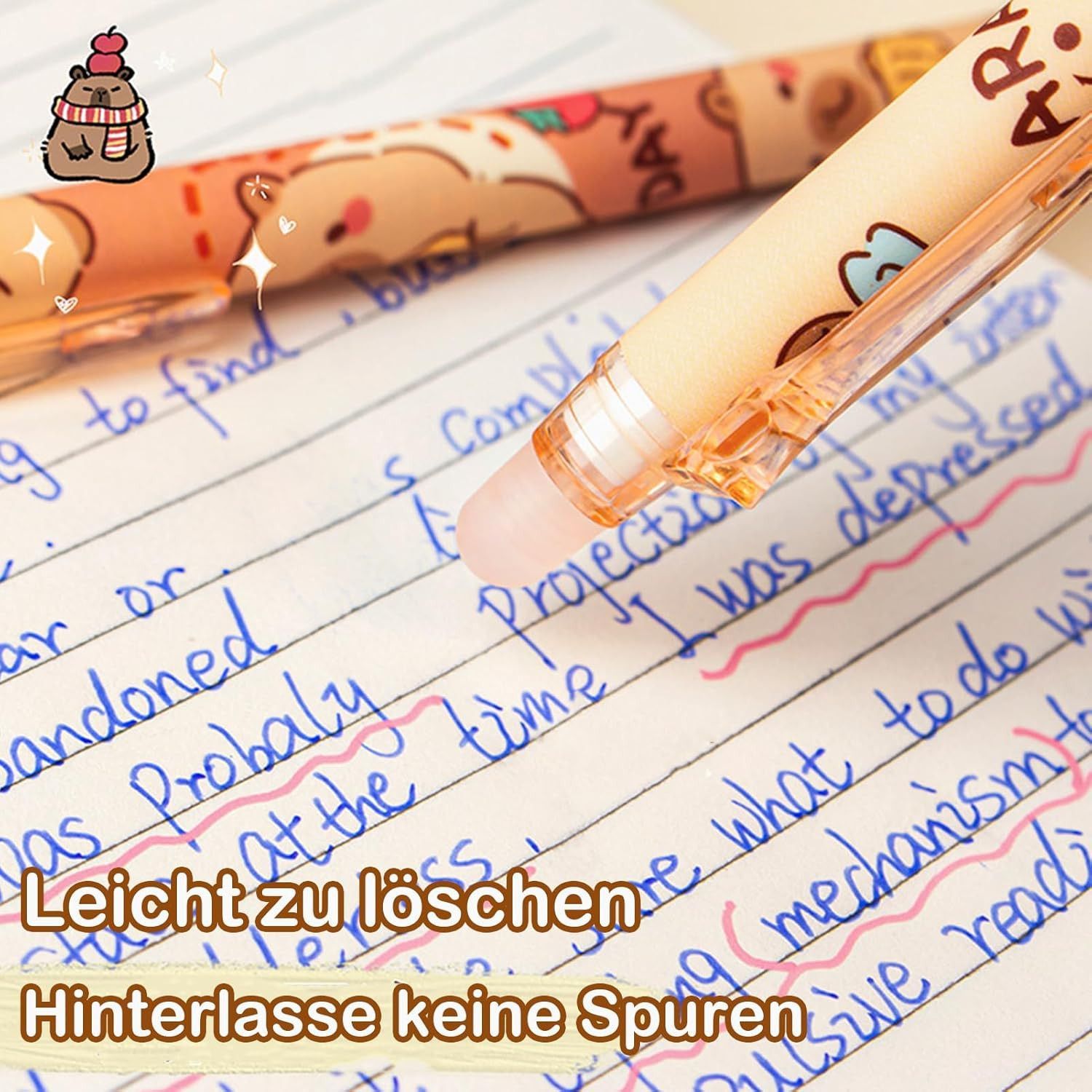 Capybara radierbare Kugelschreiber 6er Set, 0,5mm. Lustige Tier-Cartoon Stifte