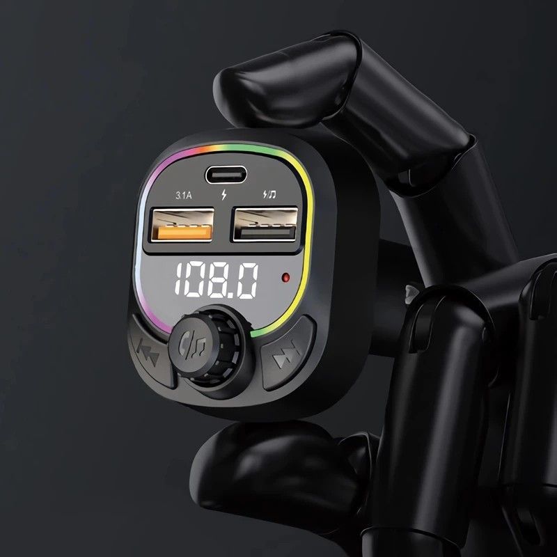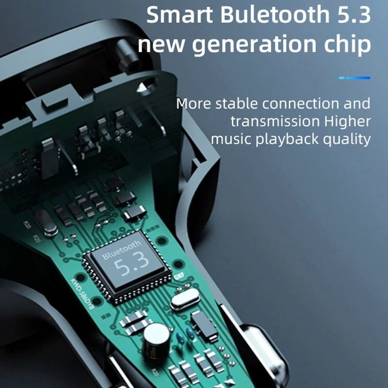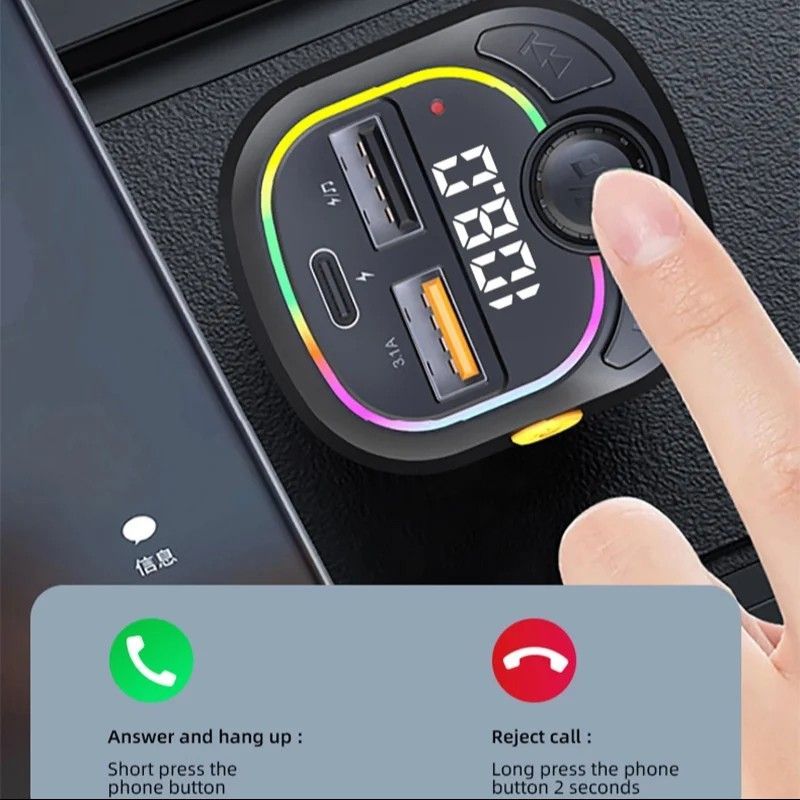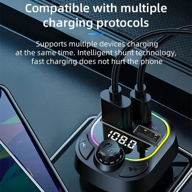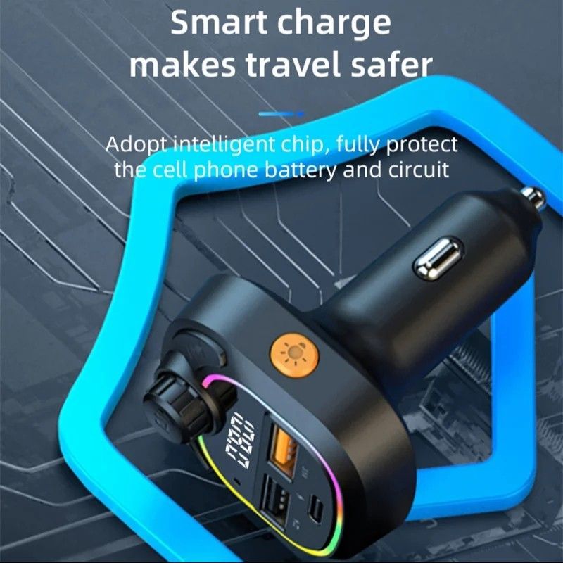 Car Bluetooth FM Transmitter, Blue Ambient Light Wireless Radio Car Receiver Adapter