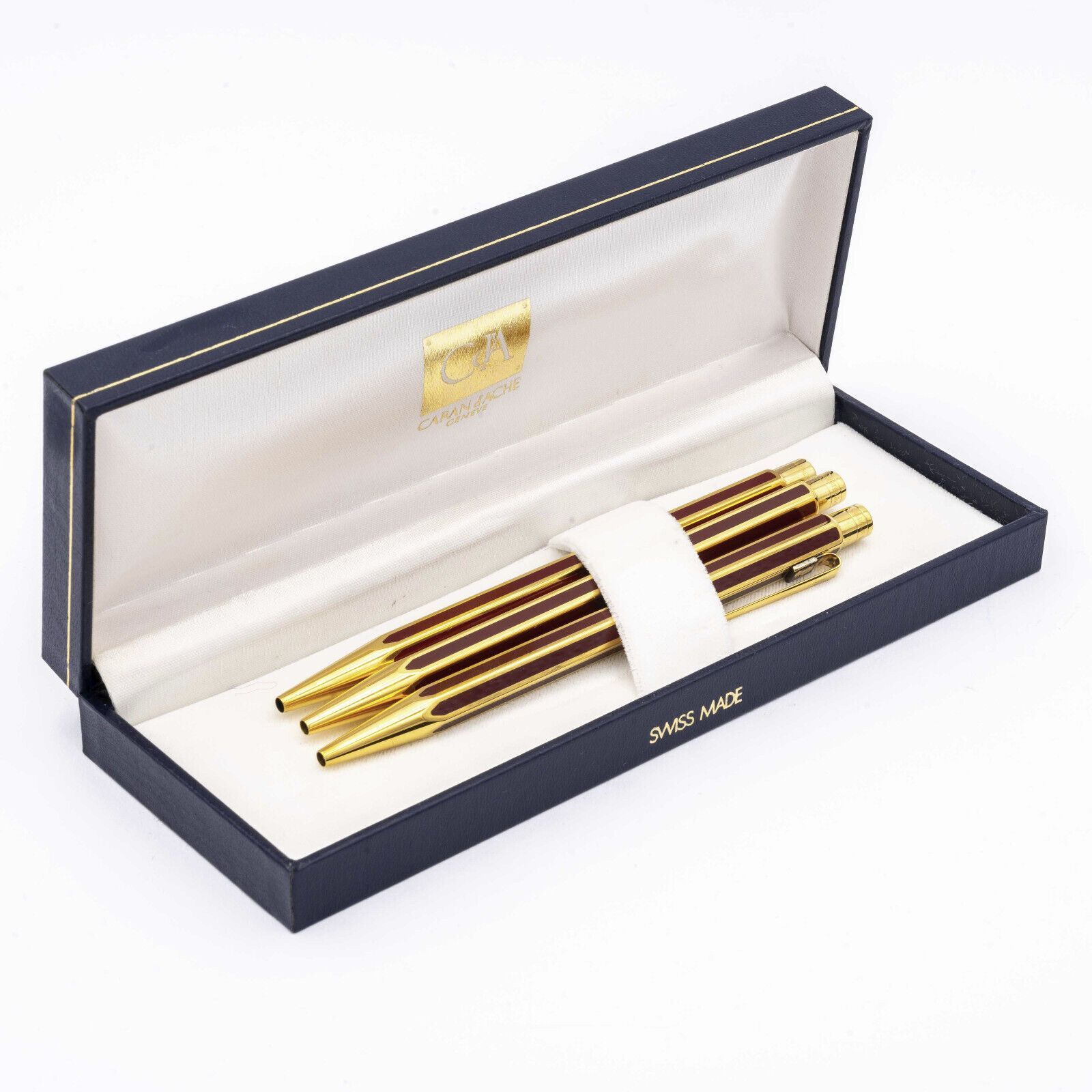 CARAN d´ACHE Ecridor Set 3x Kugelschreiber Hexagonal China-Lack Rot Gold