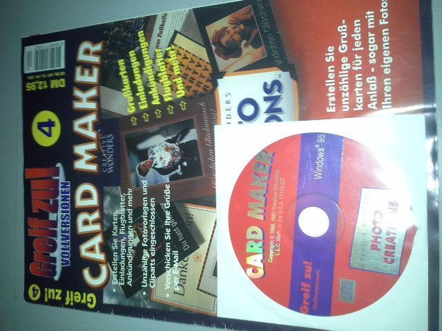 Card Maker auf CD: Grußkarten + Einladungen + Ankündigungen + Flugblätter u.s.w. erstellen, mit Fotovorlagen und Cliparts, ungebraucht ab 0,49 & 8364; Versand nach Vorauskasse plus Versandkosten --> Meine "Mich"-Seite Bitte beachten