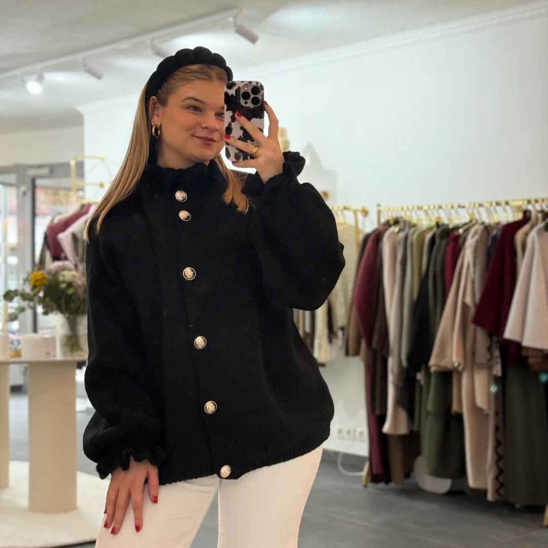 Cardigan mit Rüschen Jacke Leonita Schwarz Onesize XS-XL Damen Langarm Cardigan
