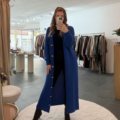 • Strickjacke Langer Cardigan Damen „Lotta“ Blau Onesize (XS-XL) Frauen Frau