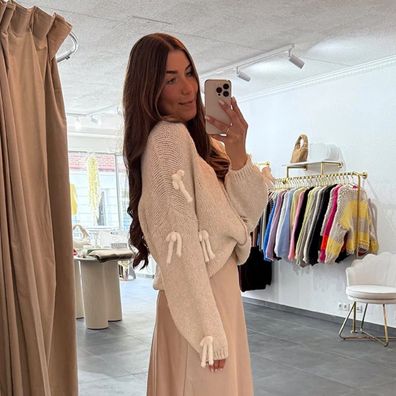 • Strickjacke Damen Cardigan mit Schleifen „Anna“ Creme Onesize XS-XL Frauen Frau