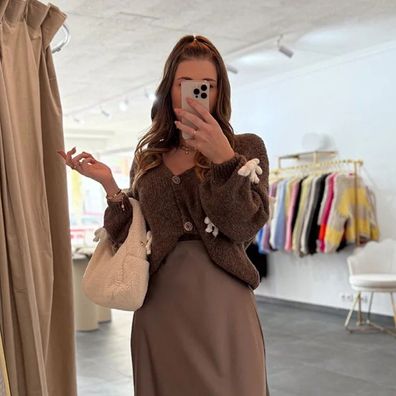 • Strickjacke Damen Cardigan mit Schleifen „Anna“ Braun Onesize XS-XL Frauen Frau