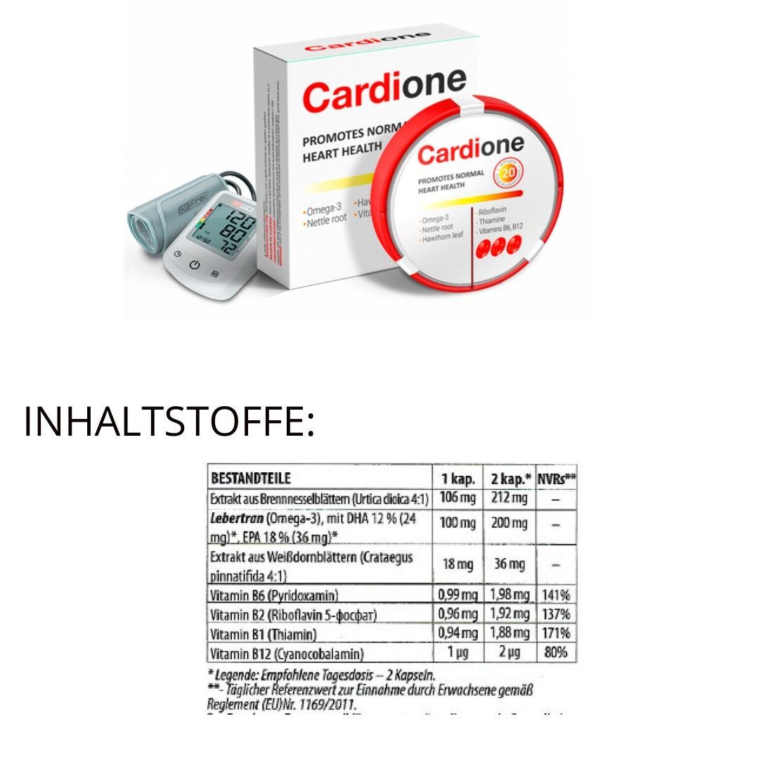 Cardione Kapseln Blutdruck - Stoffwechsel - Omega-3 Brennnessel Weißdorn Vitamine