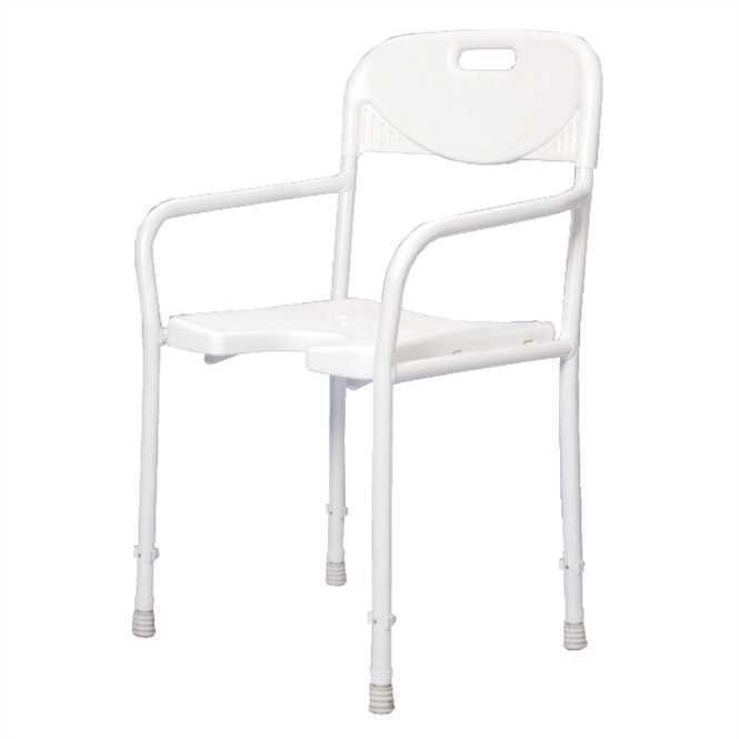 faltbarer Duschstuhl mit Arm - und Rückenlehne, Hygieneausschnitt, höhenverstellbar, ohne Montage