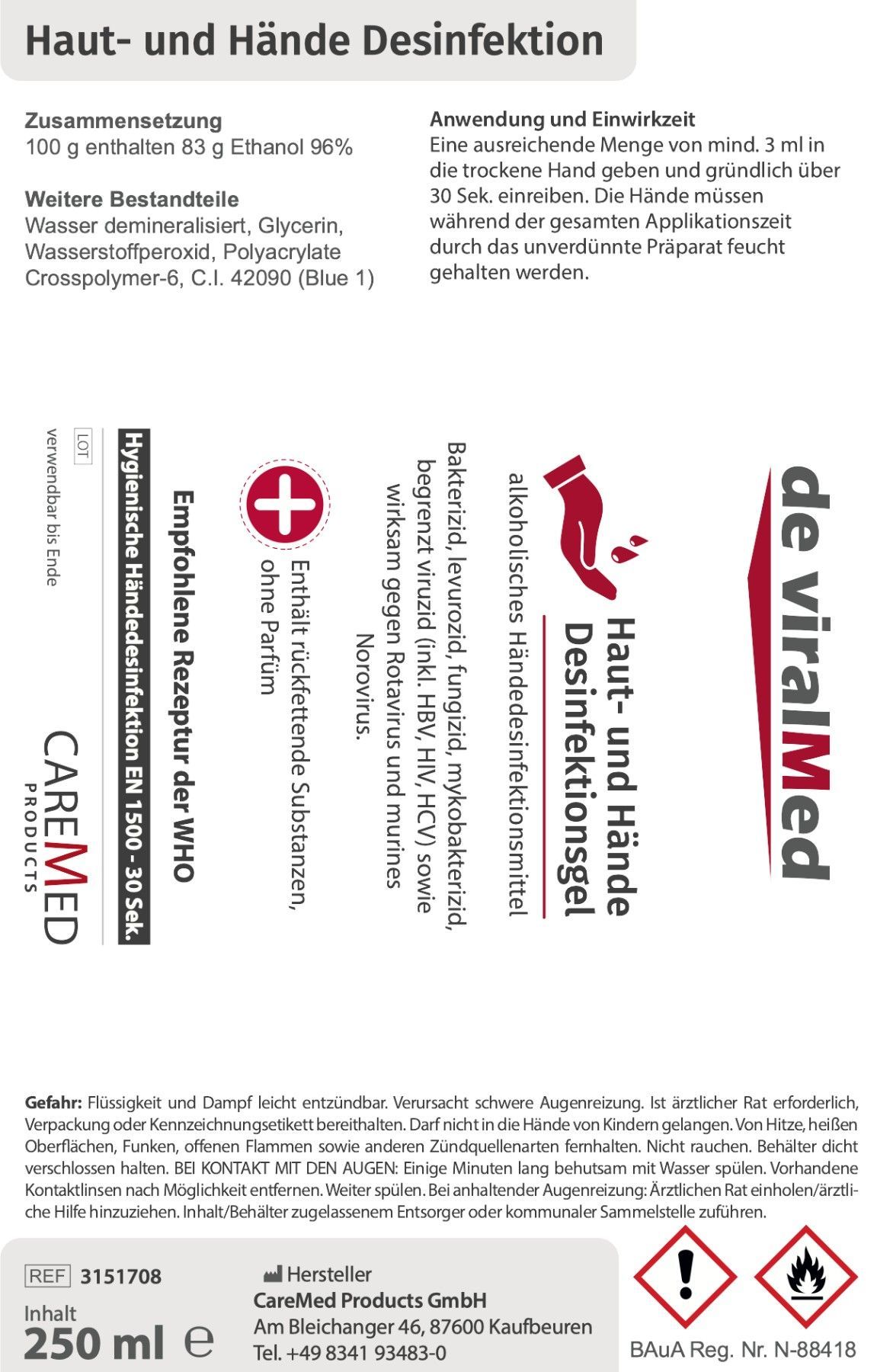 CareMed CareMed De ViralMed Haut- & Händedesinfektionsgel 250ml