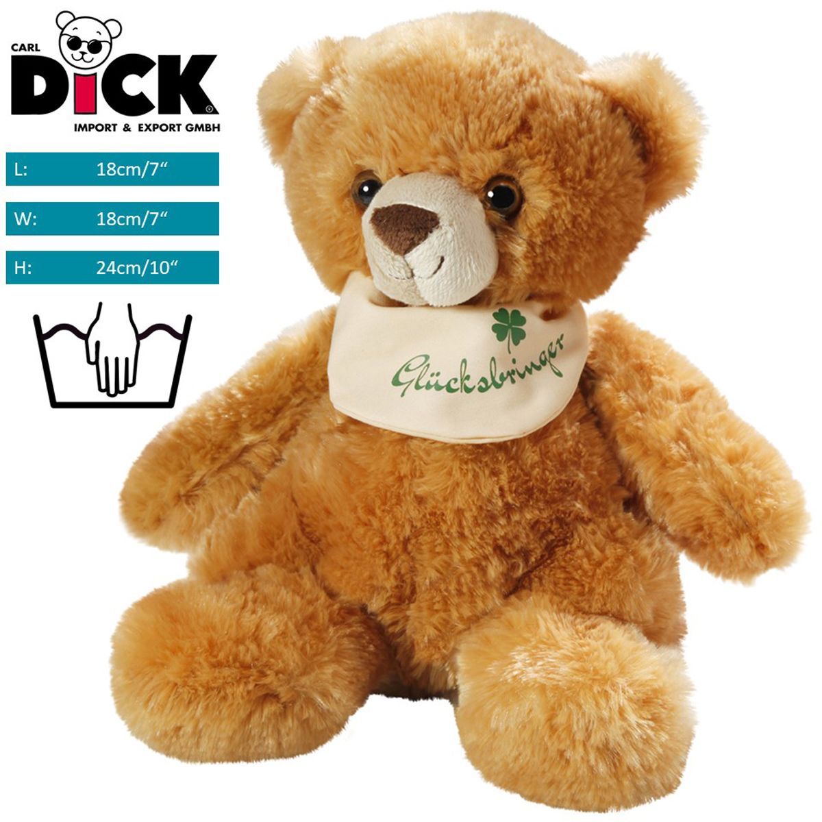 Carl Dick Teddybär sitzend mit Halstuch Glücksbringer, ca. 24cm 3493 Kuscheltier, Plü