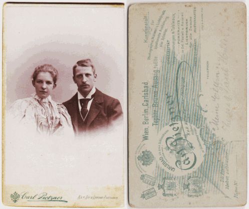Carlsbad um 1890 Therese und Paul Hiller , z. Familie Fenske gehörig Foto C. Piezner