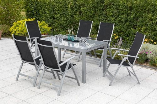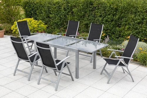 Merxx Carrara Gartenmöbel Set 7tlg., Semi Ausziehtisch, schwarz