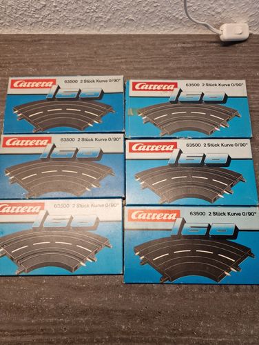 Verkaufe ein gebrauchte und bespielte Schienen der alten Carrera 160 Spurgebunden. 6 x 63500 Kurve 0 90° je 2 Stück Die Verpackung hat Lagerspuren der Inhalt der Verpackung je 2 Stück = 12 Schienen Verkauft wie auf dem Bildern als Teilträger oder zum herrichten „Der Verkauf erfolgt unter Ausschluss