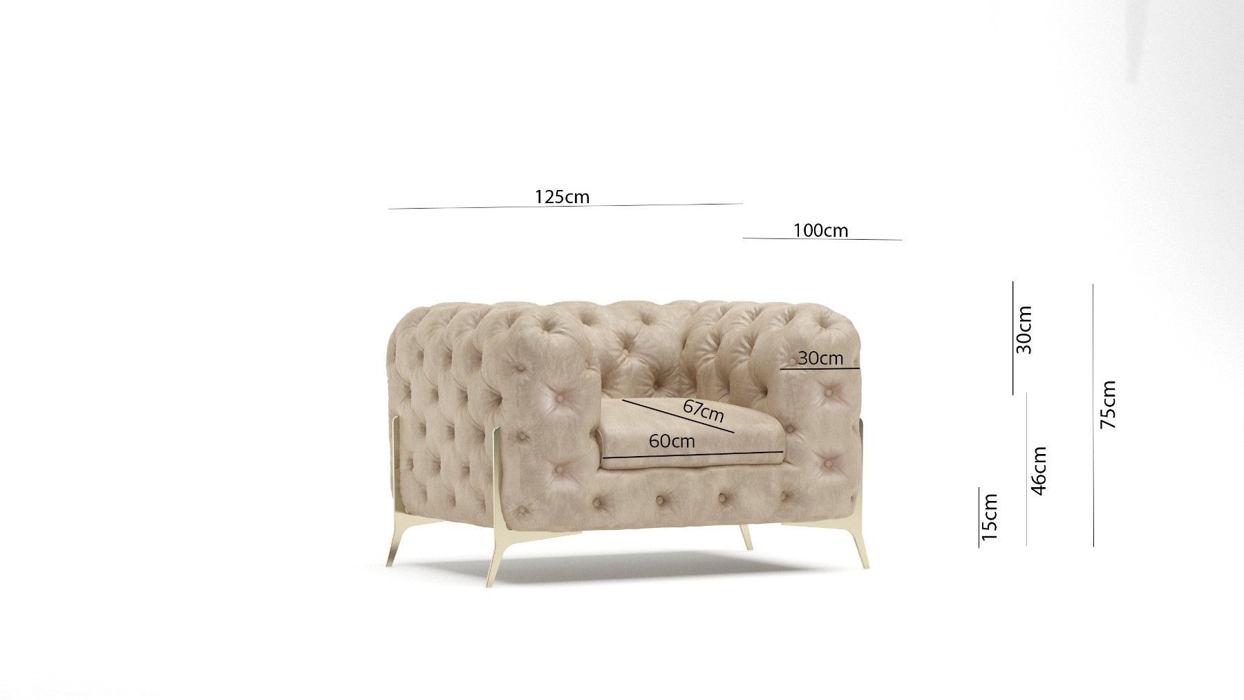 Carson - Chesterfield Sessel mit Goldene Metall Füßen