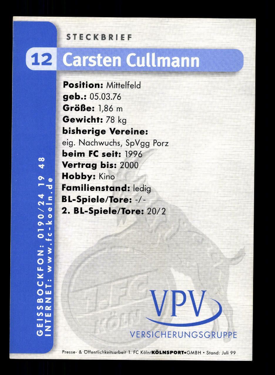 Carsten Cullmann Autogrammkarte 1. FC Köln 1999/00 Original Signiert + A 63824