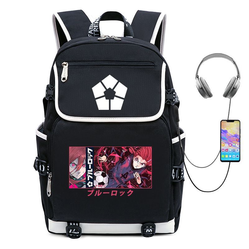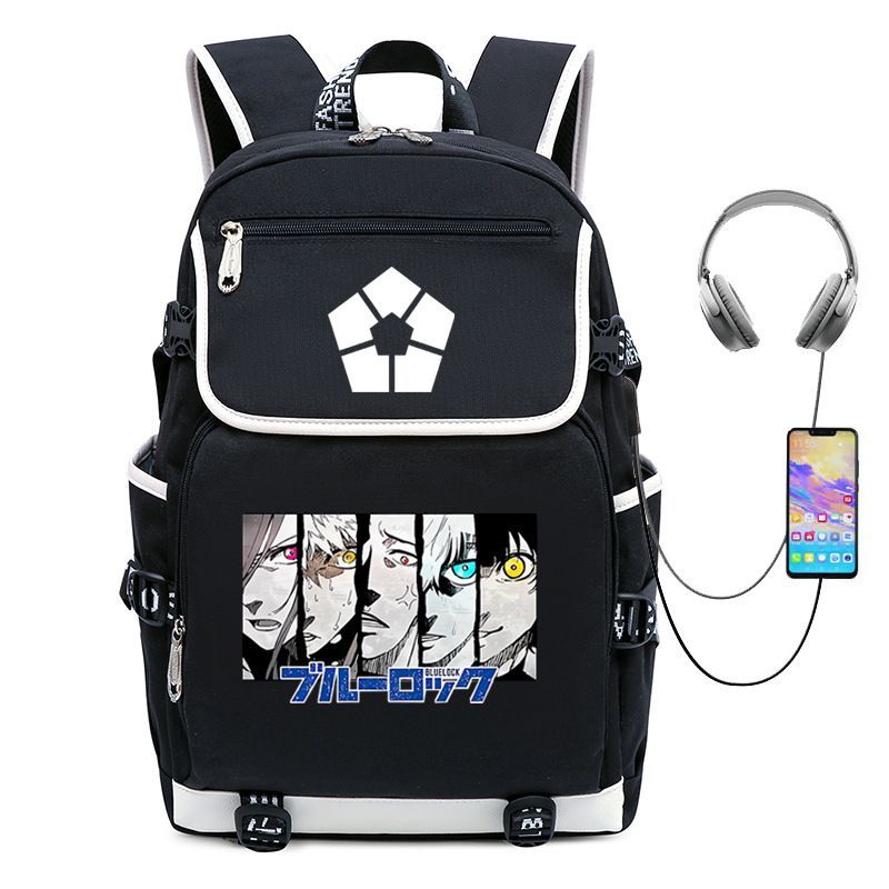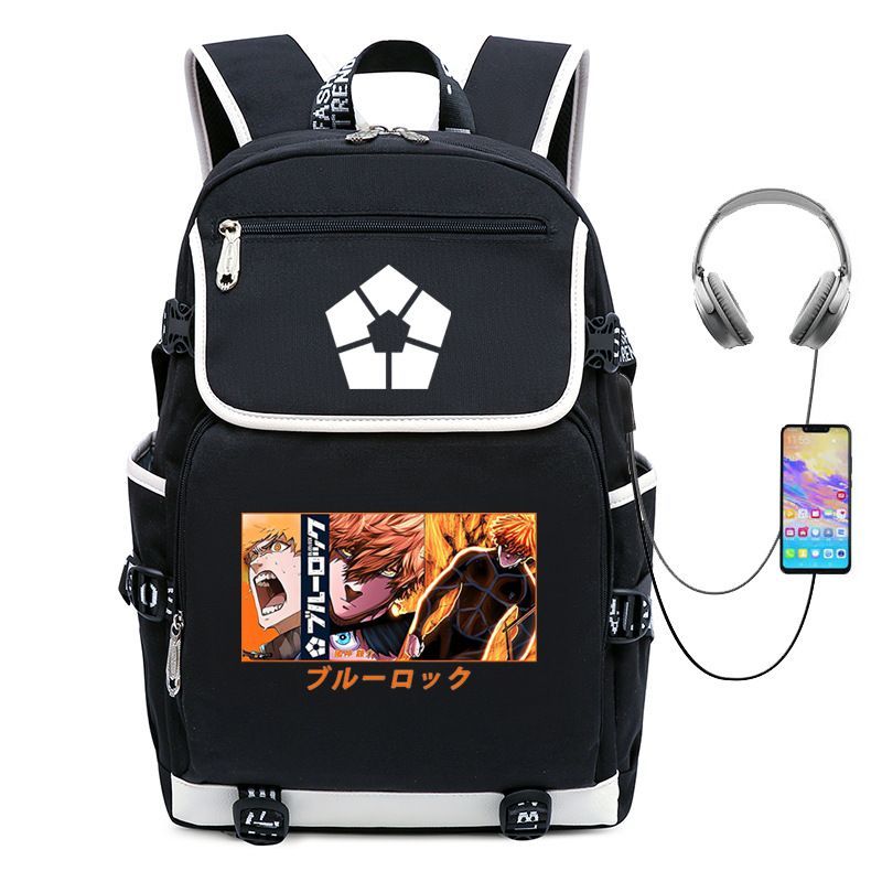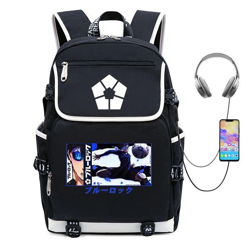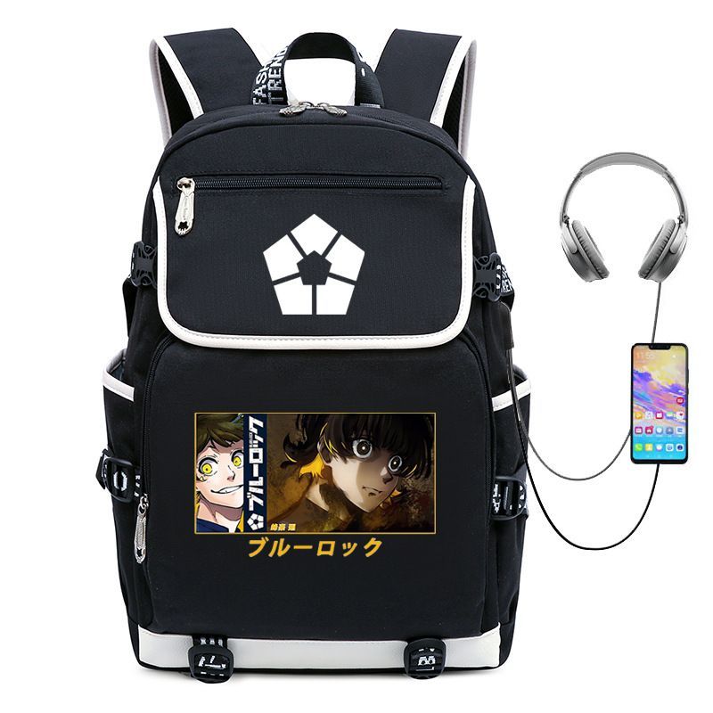Cartoon Blue Lock USB-Lade Schultaschen College Stil Rucksack Outdoor Backpack