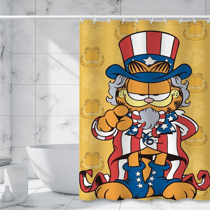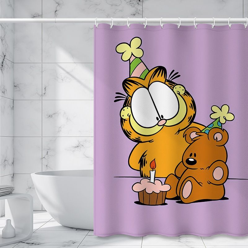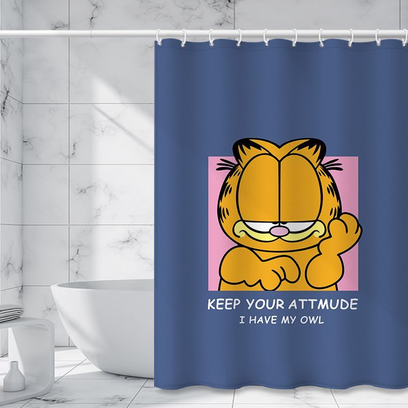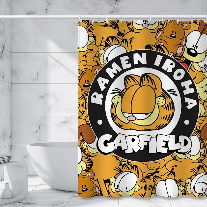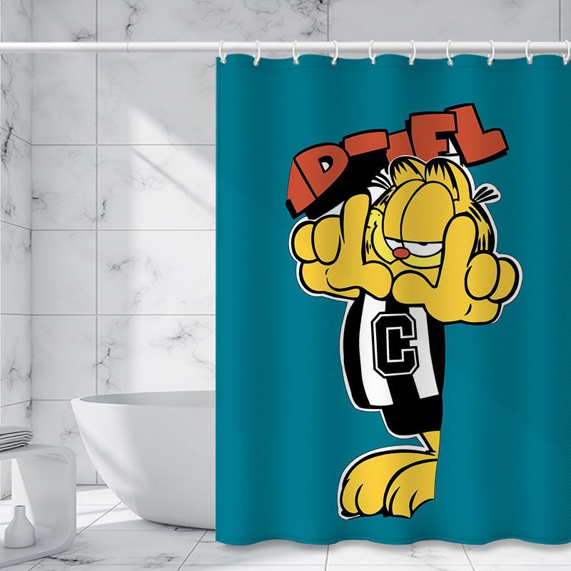 Cartoon Garfield Duschvorhänge Kawaii Badezimmer Vorhang Shower Curtain mit 12 Ringen