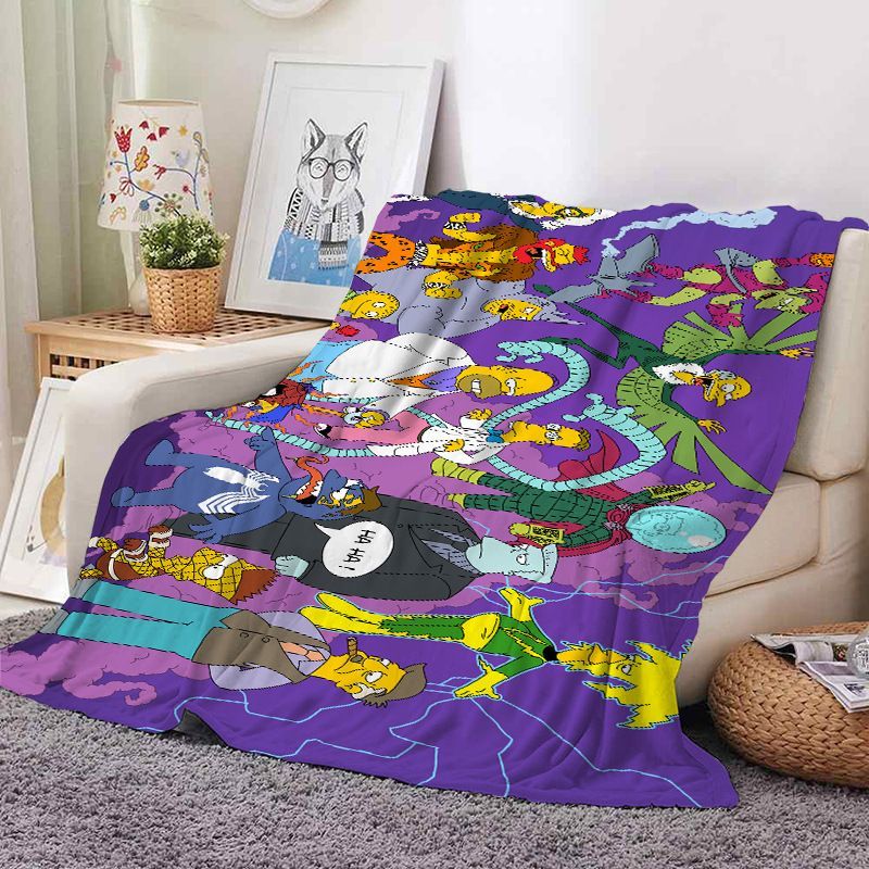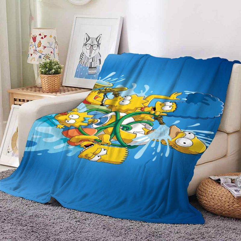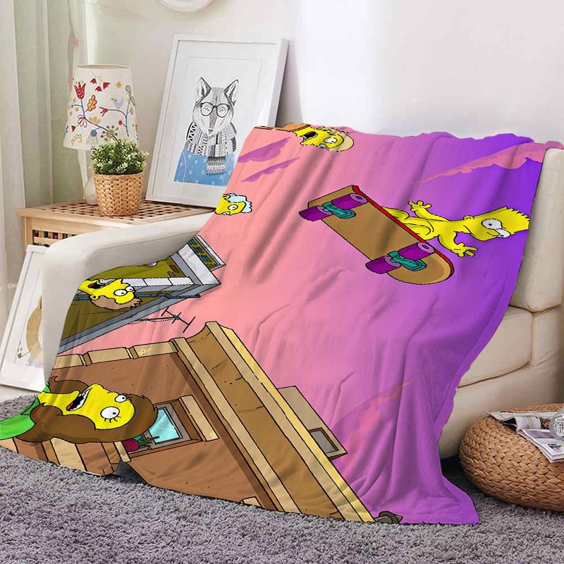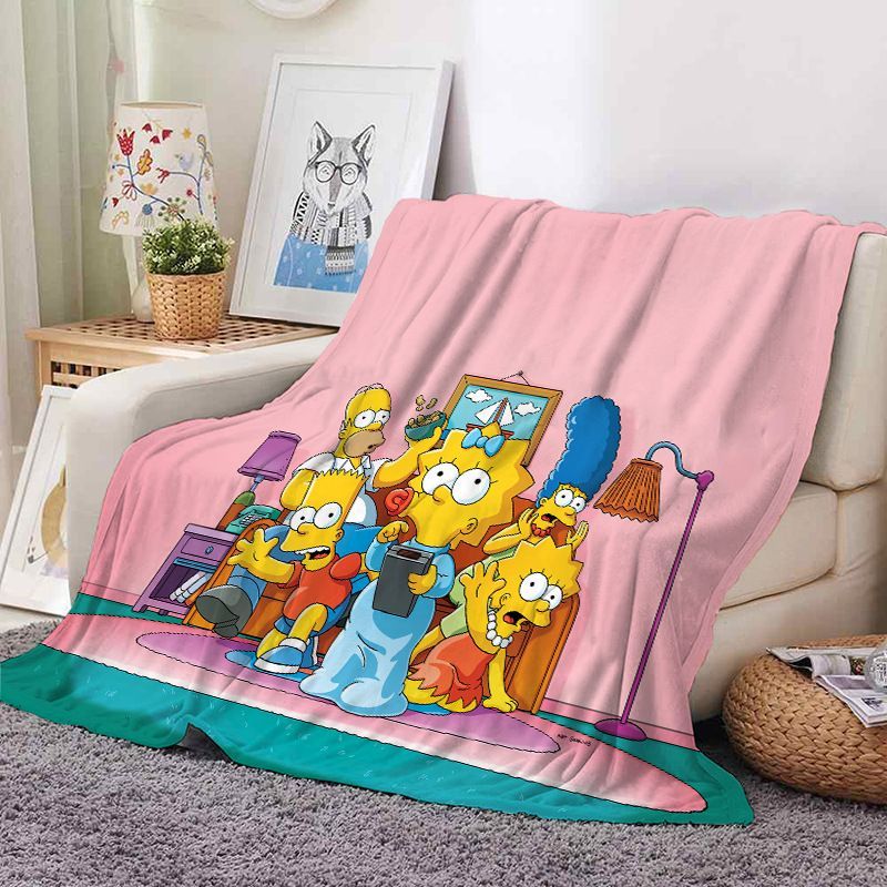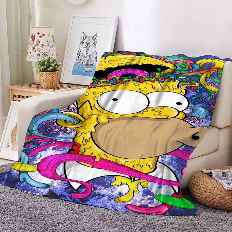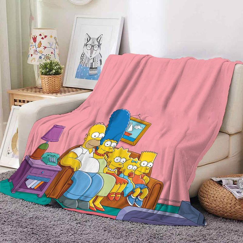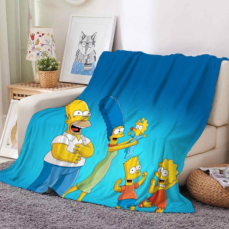 Cartoon Homer Marge Flannel Fleece Blanket Bart Decke Sommer Sofa Quilt 130x150cm
