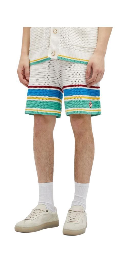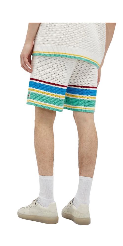Casa Blanca Men's Crochet Tennis Shorts in White/Blue Multi