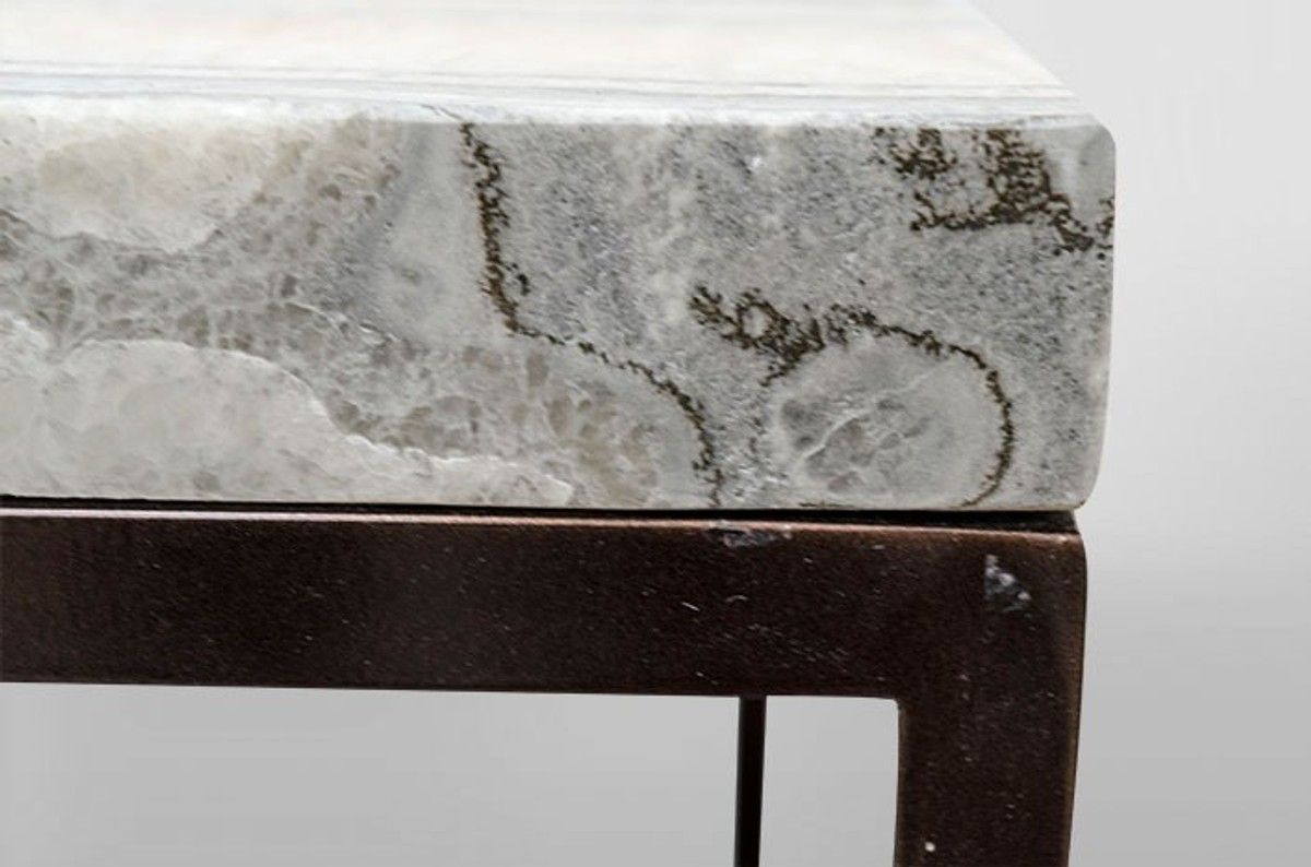 Casa Padrino Art Deco Beistelltisch Onyx / Metall 80 x 50 cm- Jugendstil Tisch - Möbe