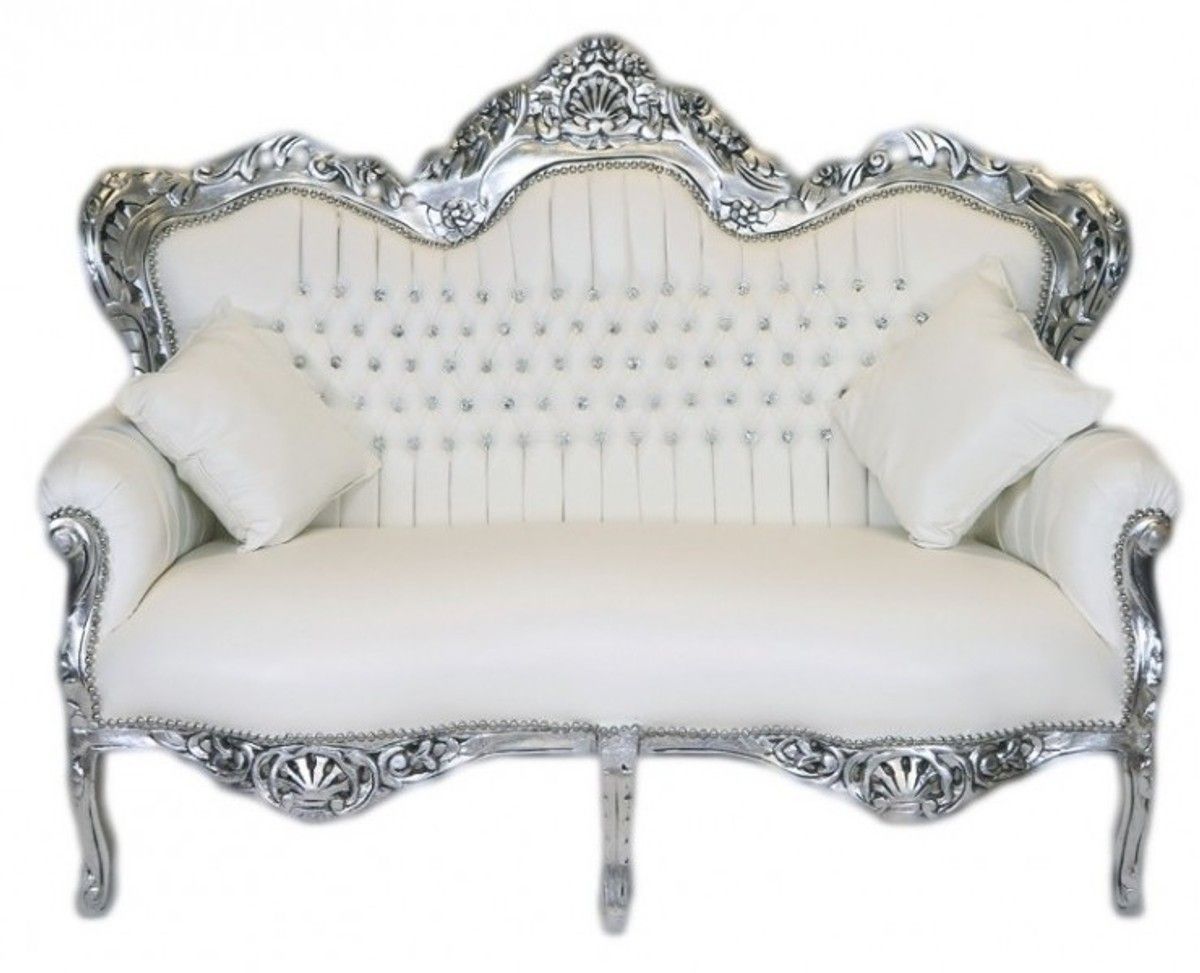 Casa Padrino Barock 2er Sofa Master Weiß Lederoptik / Silber - Wohnzimmer Couch Möbel
